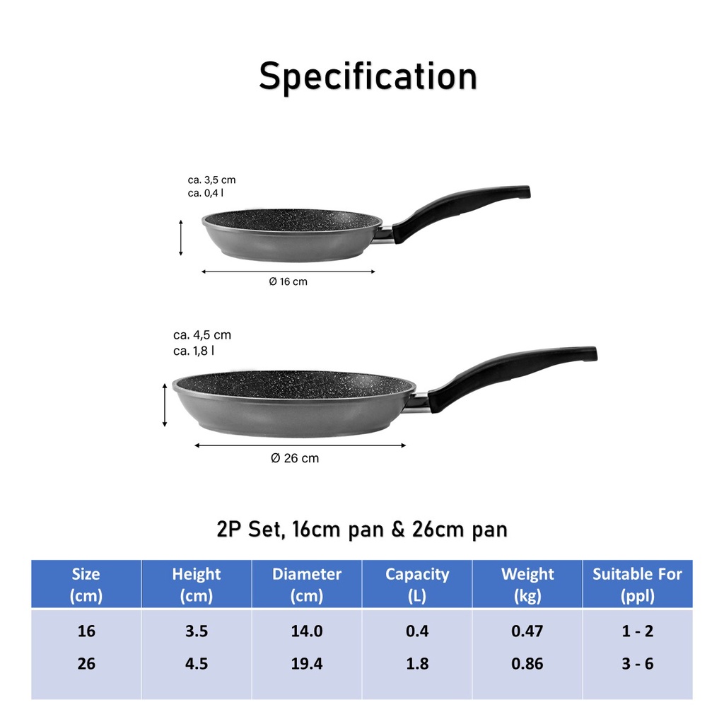 STONELINE® Frying Pan Set of 2 16/26 | without Lid - CLASSIC