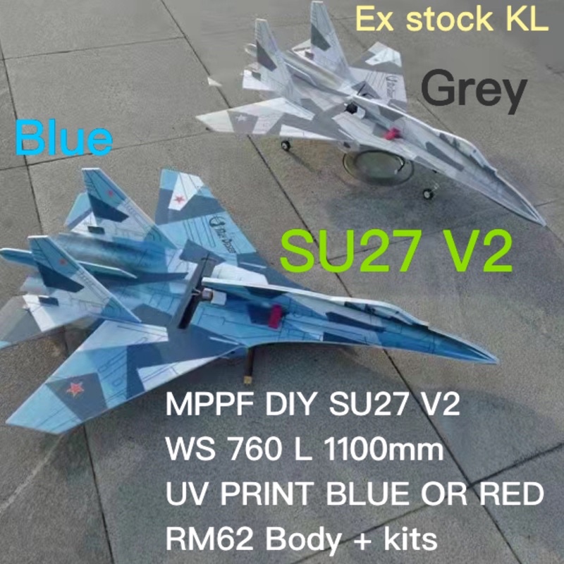 SU27 SUKHOI V2 DIY RC PLANE V2 (MPPF CRASH RESISTANT)- BODY KITS, PNP,ARTF, RTF (BLUE)
