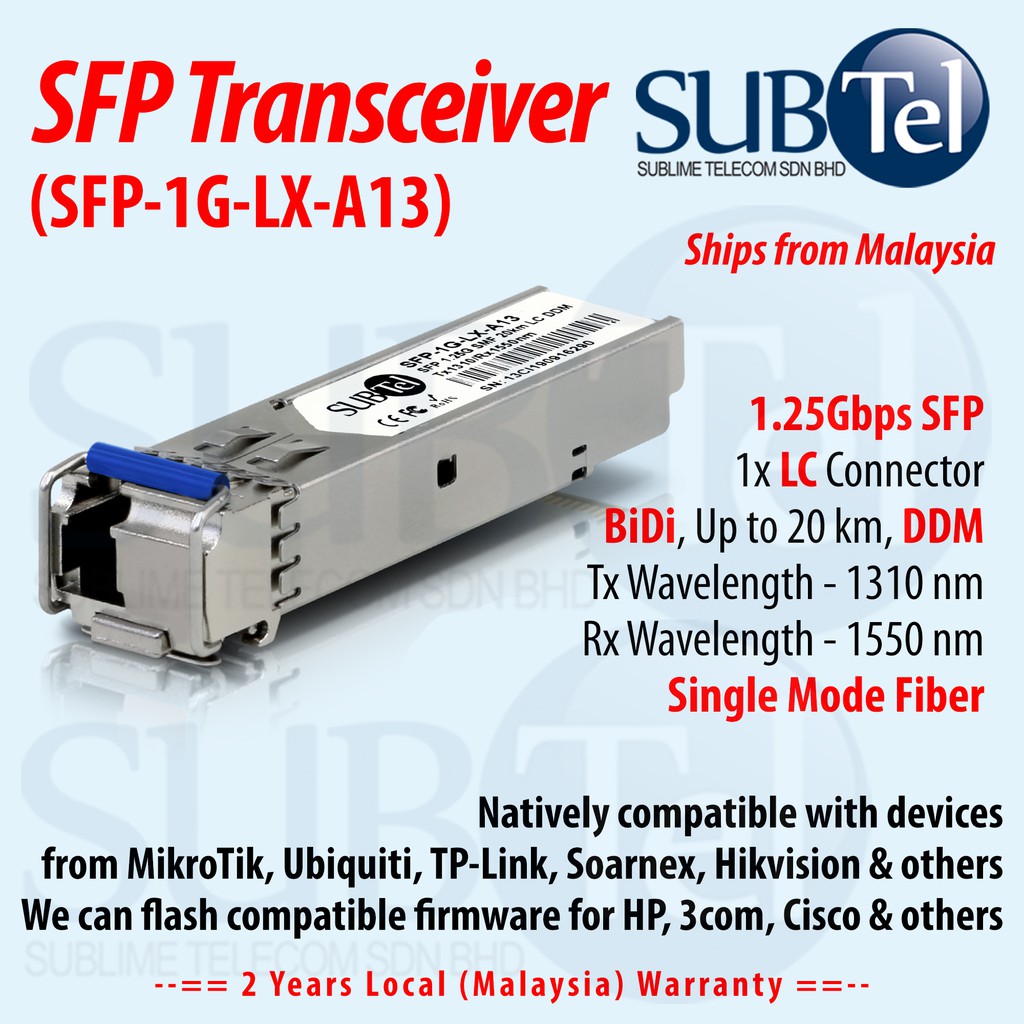 SUBTel SFP-1G-LX-A13 A15 1G 20km BiDi SFP Transceiver module Fiber Optic