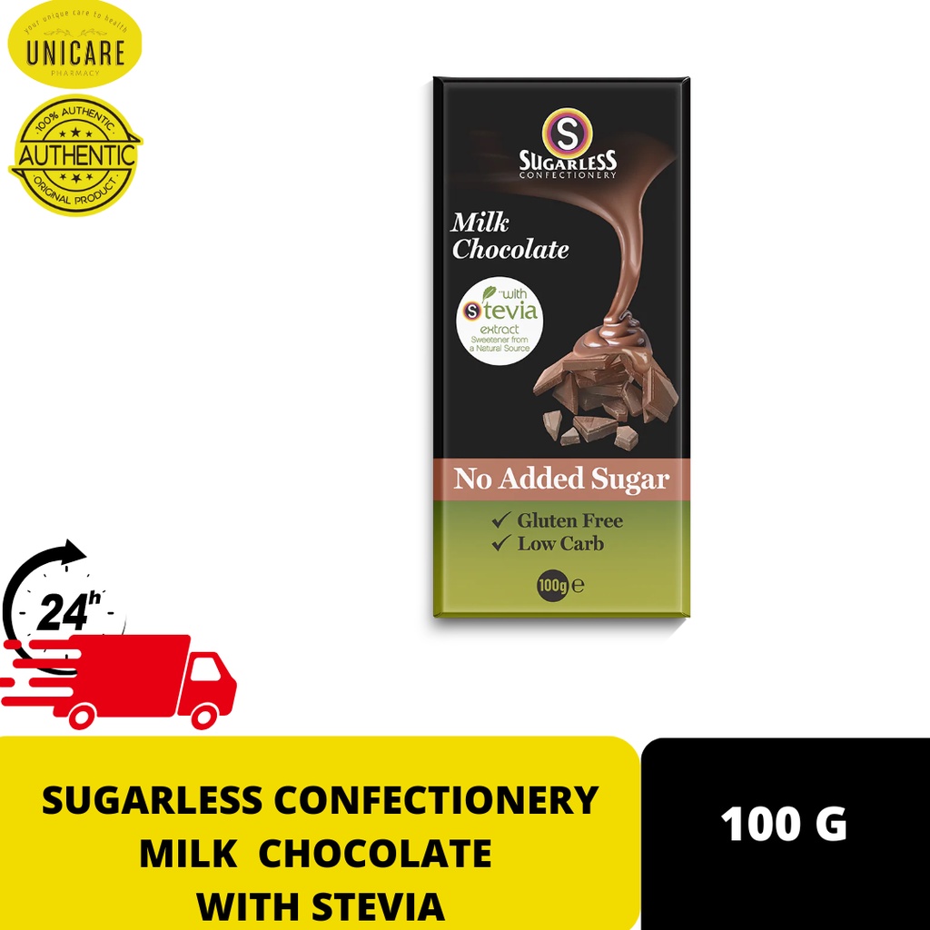 SUGARLESS CONFECTIONARY MILK CHOCOLATE WITH STEVIA 100G