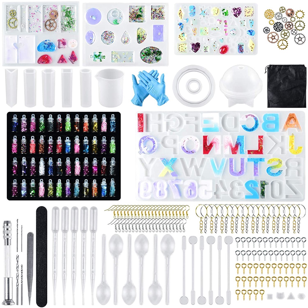 SUGELI Silicone Epoxy Resin Casting Molds Kits DIY Jewelry Resin Molds Craft Kit for Parent-Child Interaction with Alphabet Letter Molds