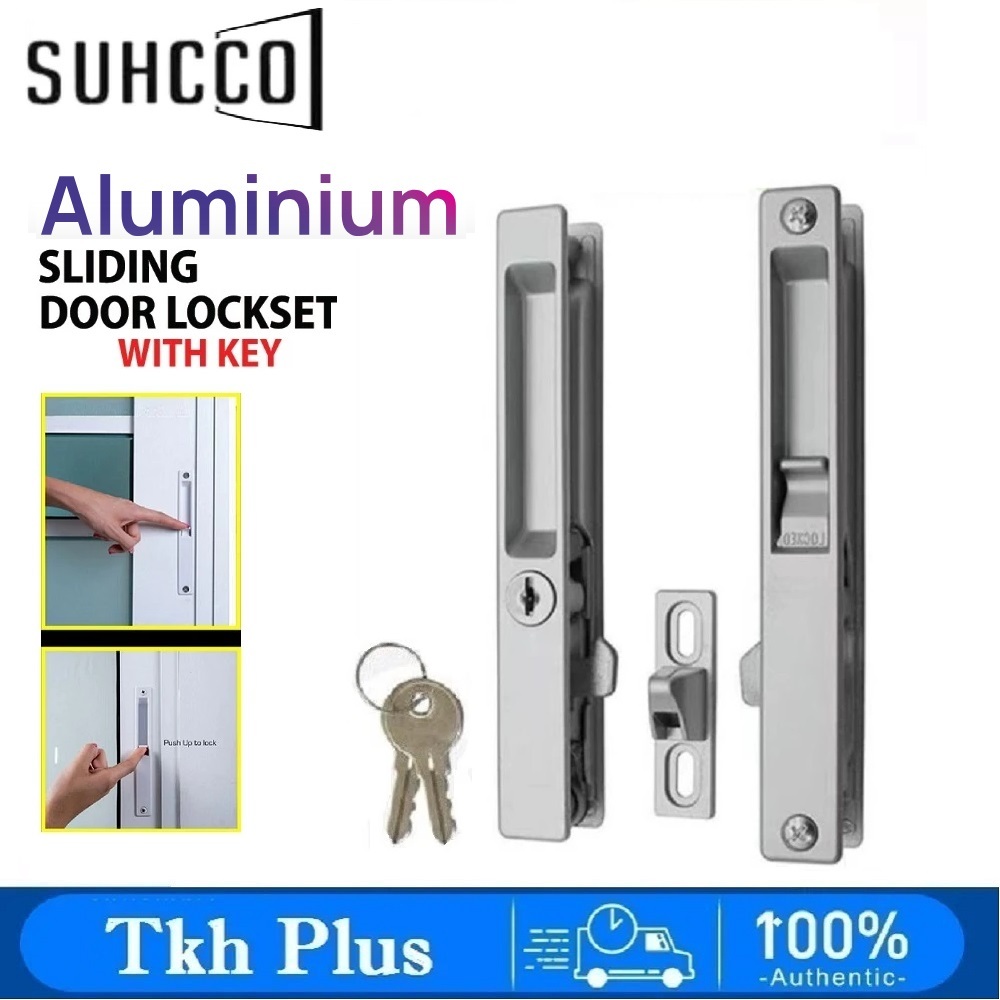 SUHCCO 25mm A6 Aluminium Sliding Glass Door Slide Door Hook Lock with Key Silver / Black