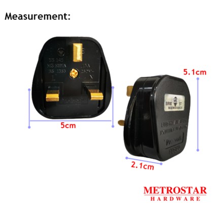 SUM 13A 3Pin Plug Top Black (SIRIM) UK Design Safety Kepala Plug Hitam[SIRIM approved]