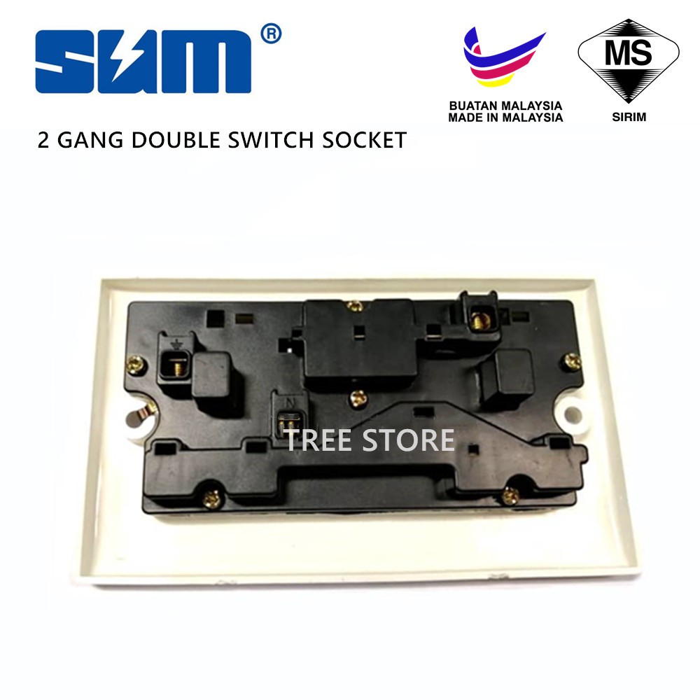 SUM 13A Double Switch Socket Outlet 13A (SIRIM) Electric Wall Switched Socket Plug 3 PIN 2 GANG 3pin 2gang