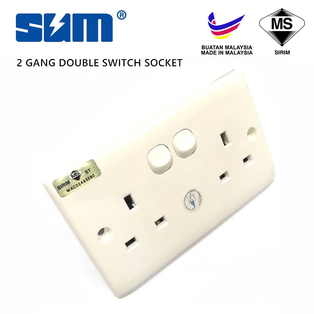 SUM 13A Double Switch Socket Outlet 13A (SIRIM) Electric Wall Switched Socket Plug 3 PIN 2 GANG 3pin 2gang