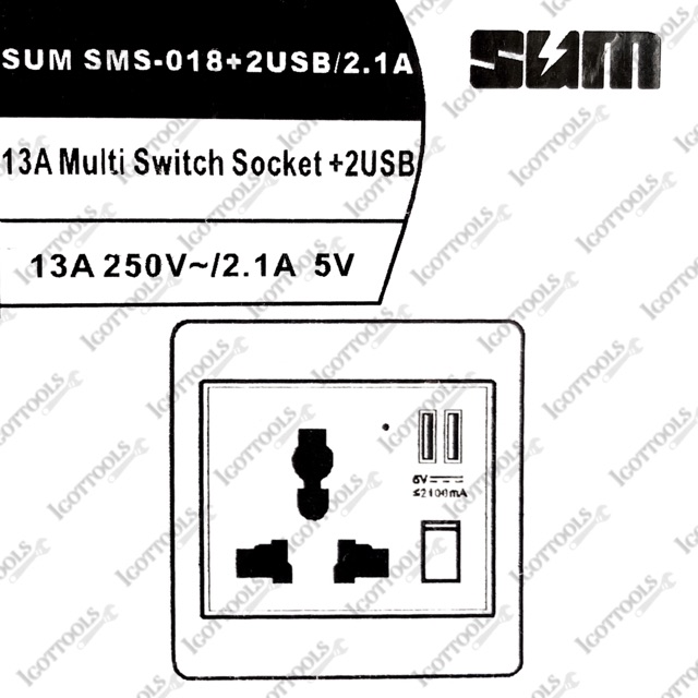 SUM 13A Multi Switch Socket + 2x 2.1A 5V USB Pot (SMS-018+2USB/2.1A) MALAYSIA JKR AND SIRIM APPROVED
