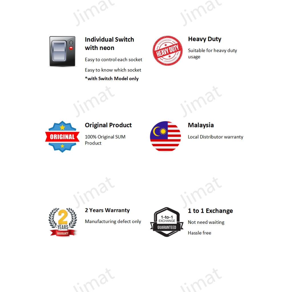 SUM 3 Gang Surge Protector Multi Adapter Plug adaptor socket Extension extention 3 Pin heavy duty sirim approved