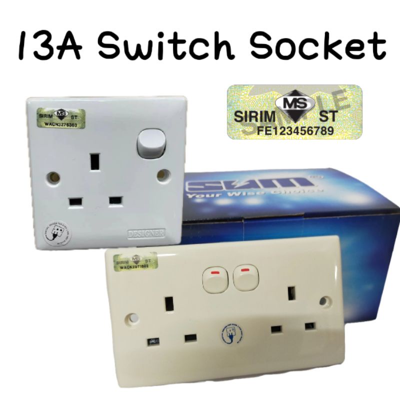 SUM Geloof 13A Switch Socket 2Gang Switch Socket 3 Pin Socket With Sirim Approved