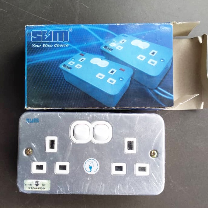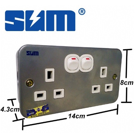 SUM MS-D213 Switch Socket 13 AMP SURFACE & BASE METAL CLAD Double Switches Socket
