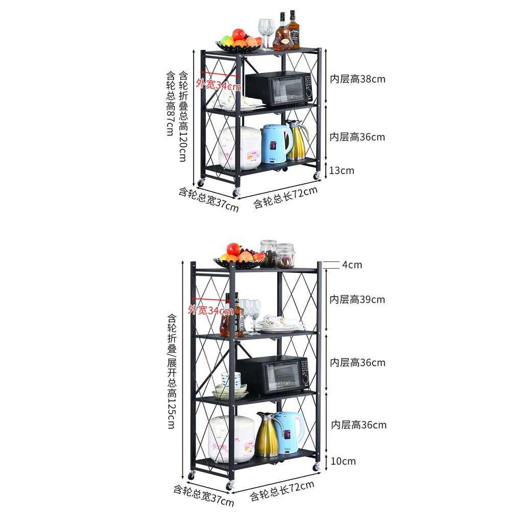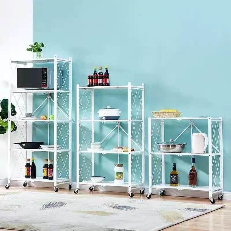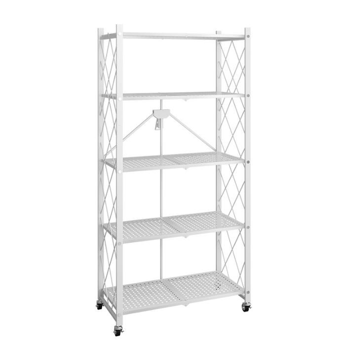 SUMAIRU 5 Tier Foldable Rack Mobile Storage Rack Kitchen Organizers Home Storage Rack Rak with Wheel roda rak viral