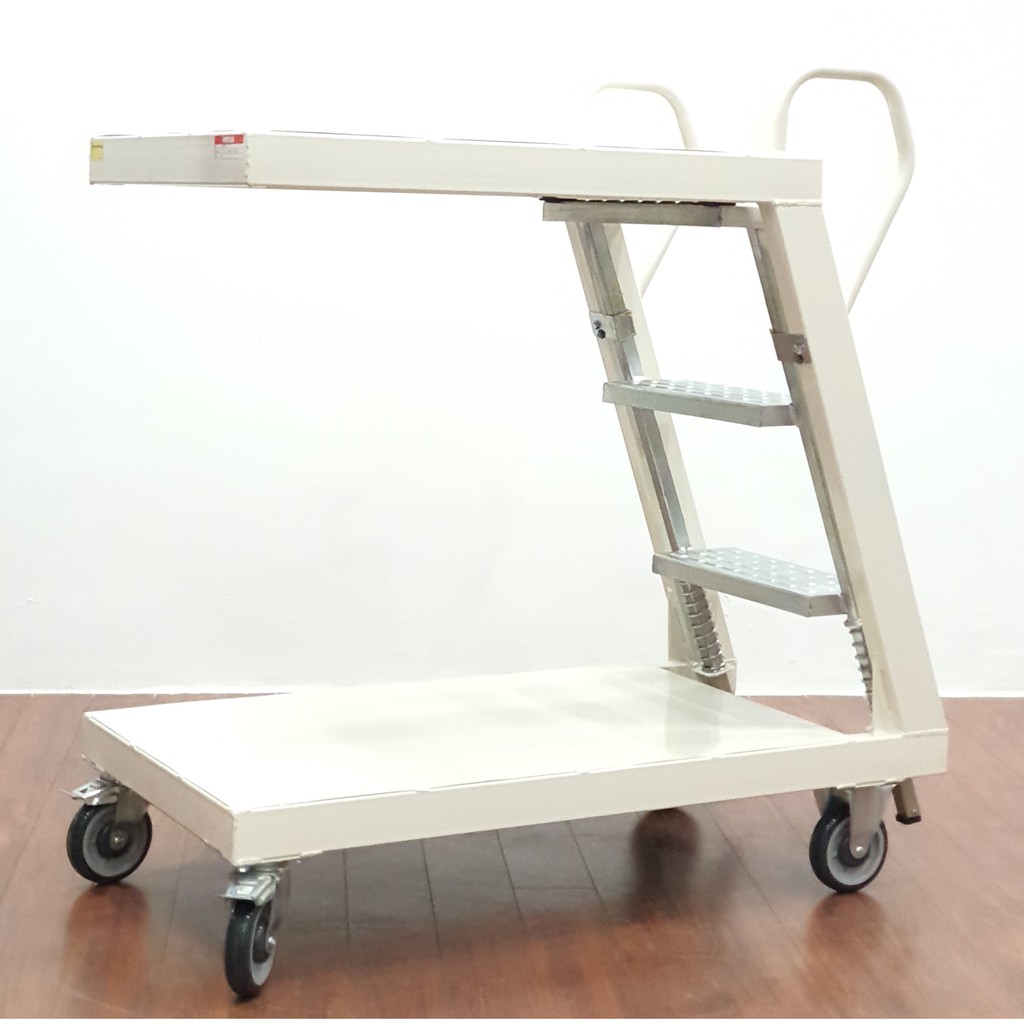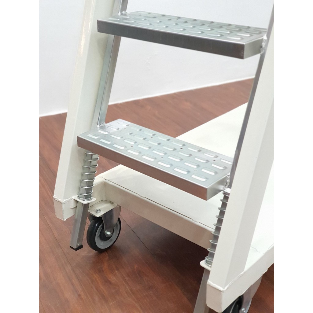 SUMO 3 Feet Fully Welded Spring Loaded 2 in 1 Platform Ladder Trolley Steel Warehouse Mobile Ladder Trolley Heavy Duty