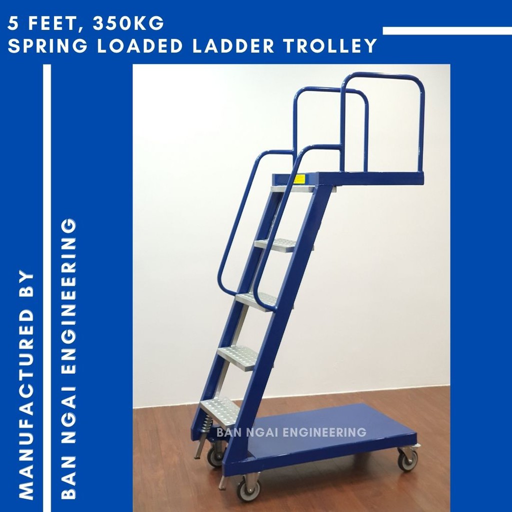 SUMO 5 Feet Fully Welded Spring Loaded 2 in 1 Platform Ladder Trolley Steel Warehouse Mobile Ladder Trolley Heavy Duty
