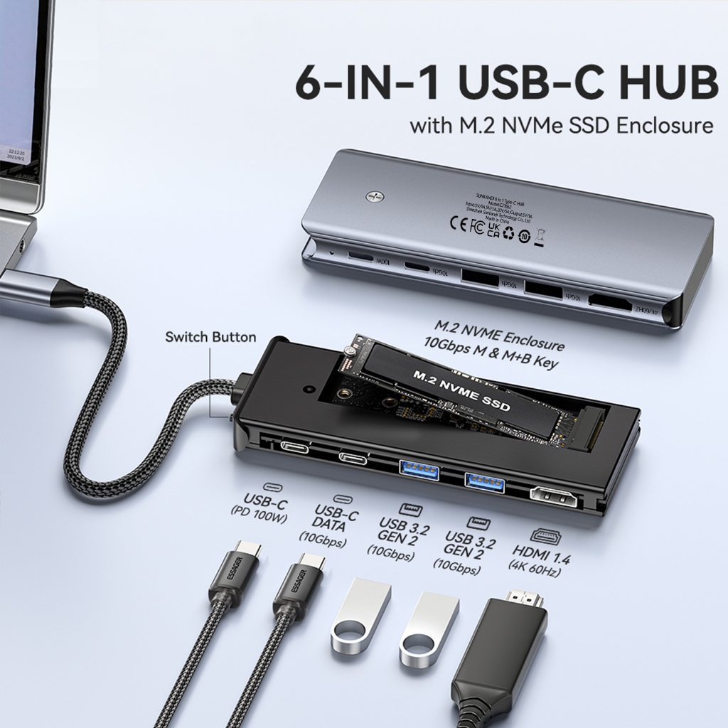 SUNKANDI 8-in-1 Docking Station, Docking Station, and Hard Drive Enclosure All in One Compatible 10Gbps Fast for MacBook Pro