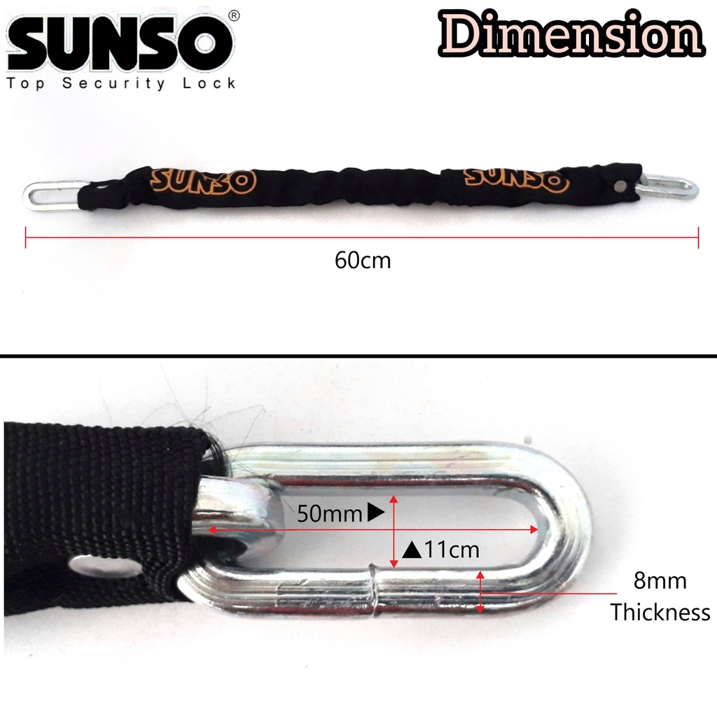 SUNSO 8MM THICKNESS HEAVY DUTY SECURITY STEEL CHAIN LOCK FOR HOUSEHOLD ,OUTDOOR USAGE