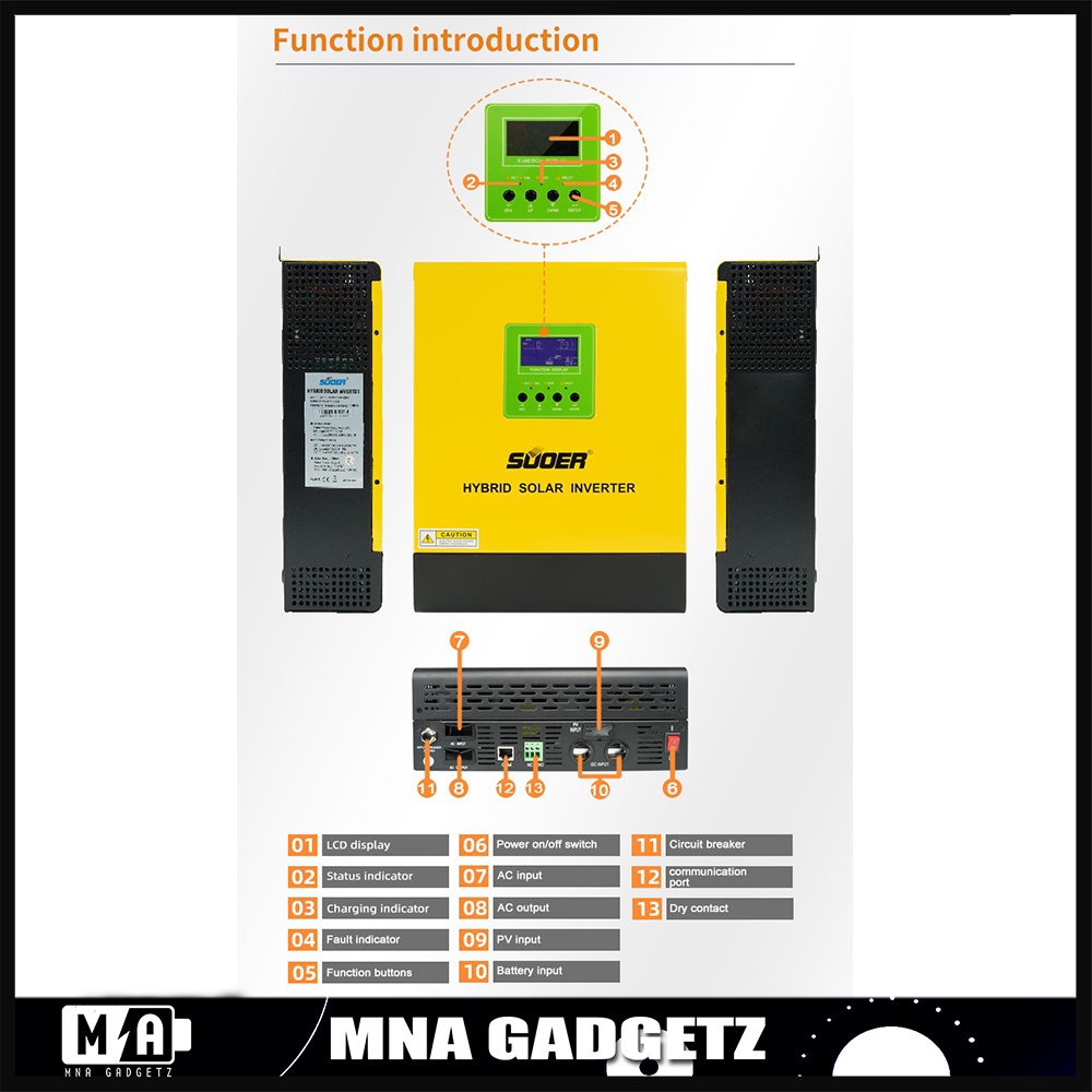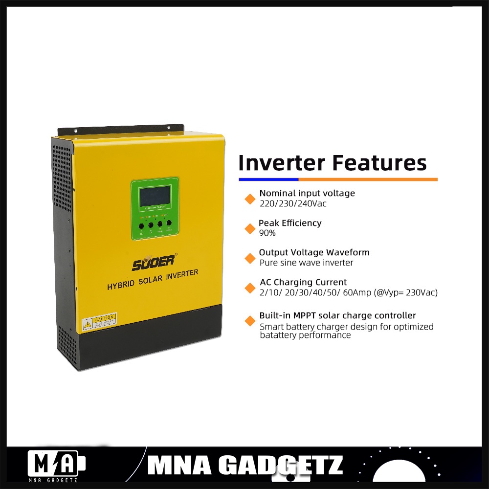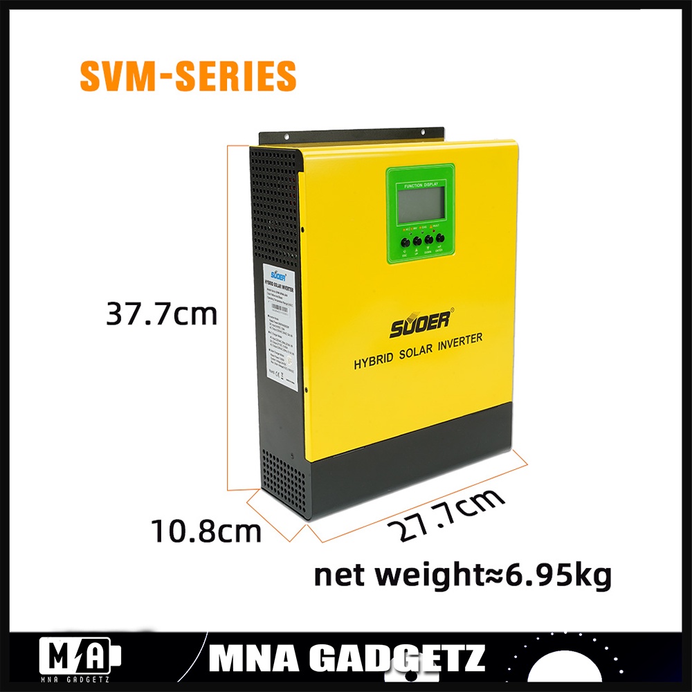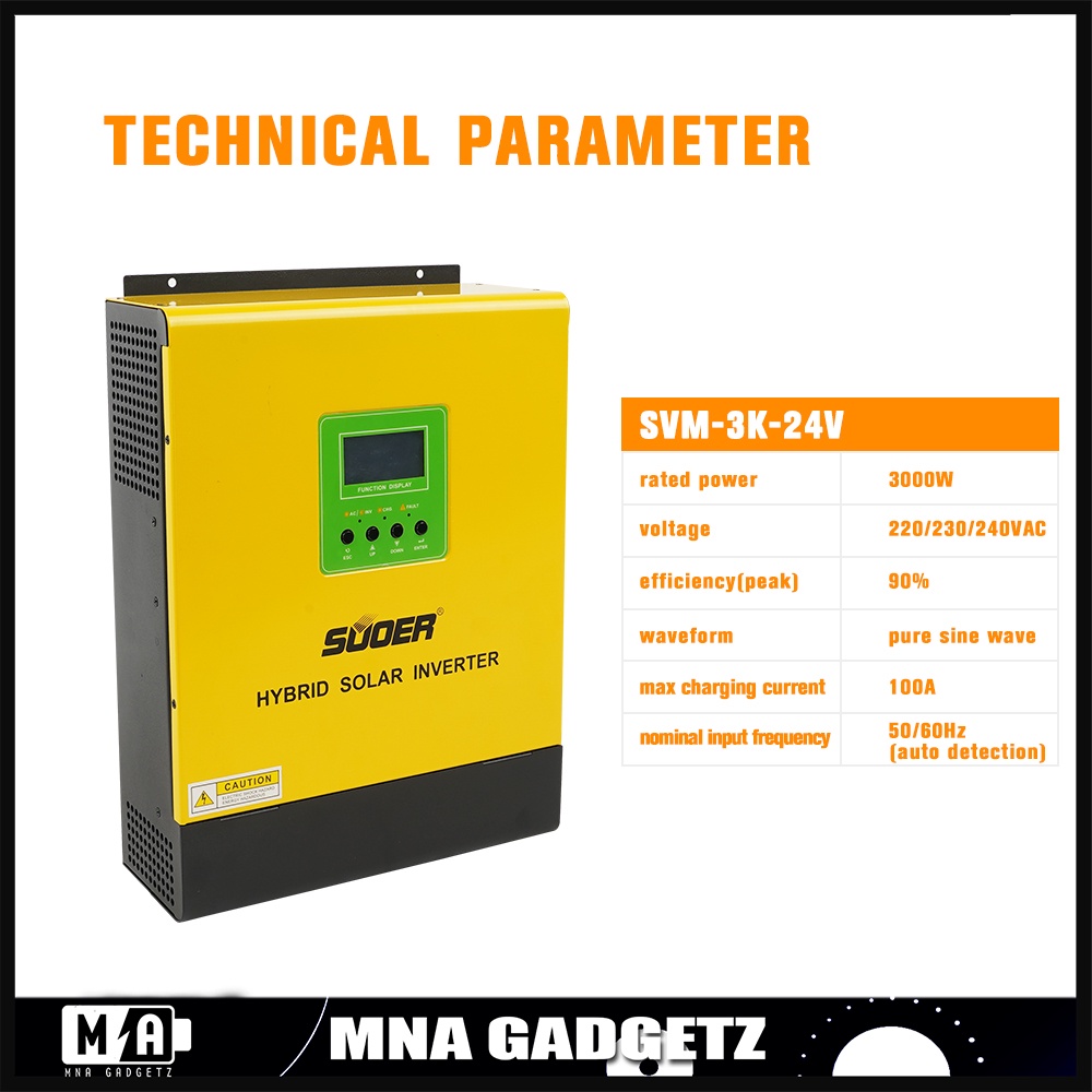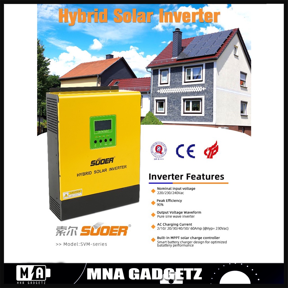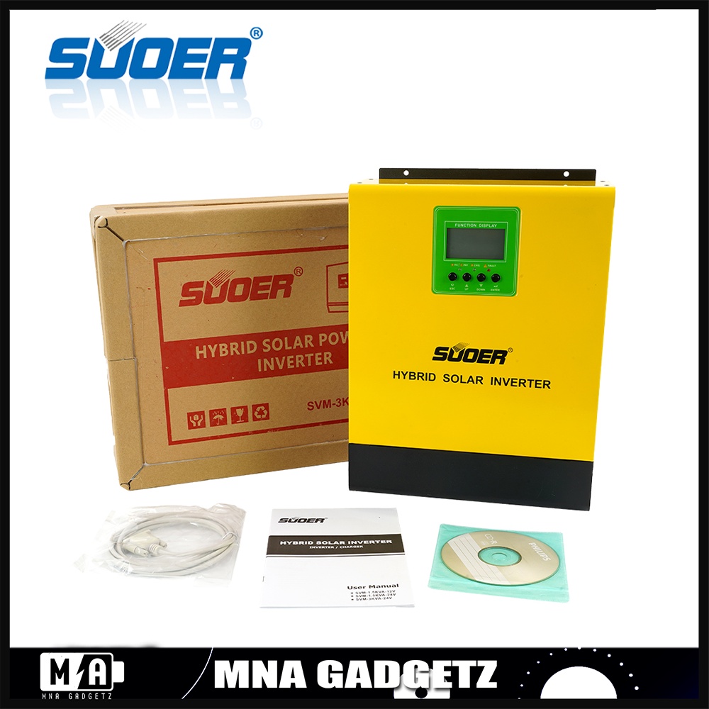 SUOER SVM 3K 24V Solar Hybrid Inverter High Frequency Dc Ac Inverter 24vdc to 230vac Pure Sine Wave MNA
