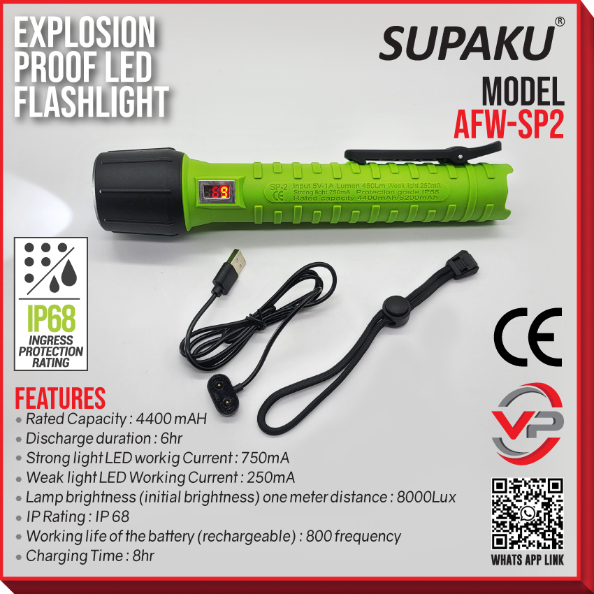 SUPAKU EXPLOSION PROOF LED FLASHLIGHT AFW-SP1/AFW-SP2 COMES WITH USB CHARGER/BATTERY LIFE INDICATION ON SCREEN LED