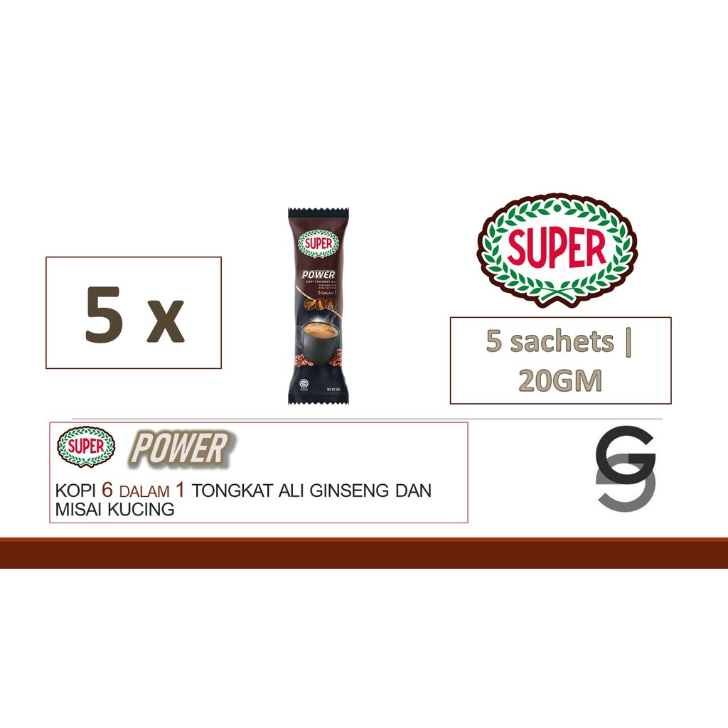 SUPER POWER 6in1 Tongkat Ali Misai Kucing Ginseng Coffee (20g)