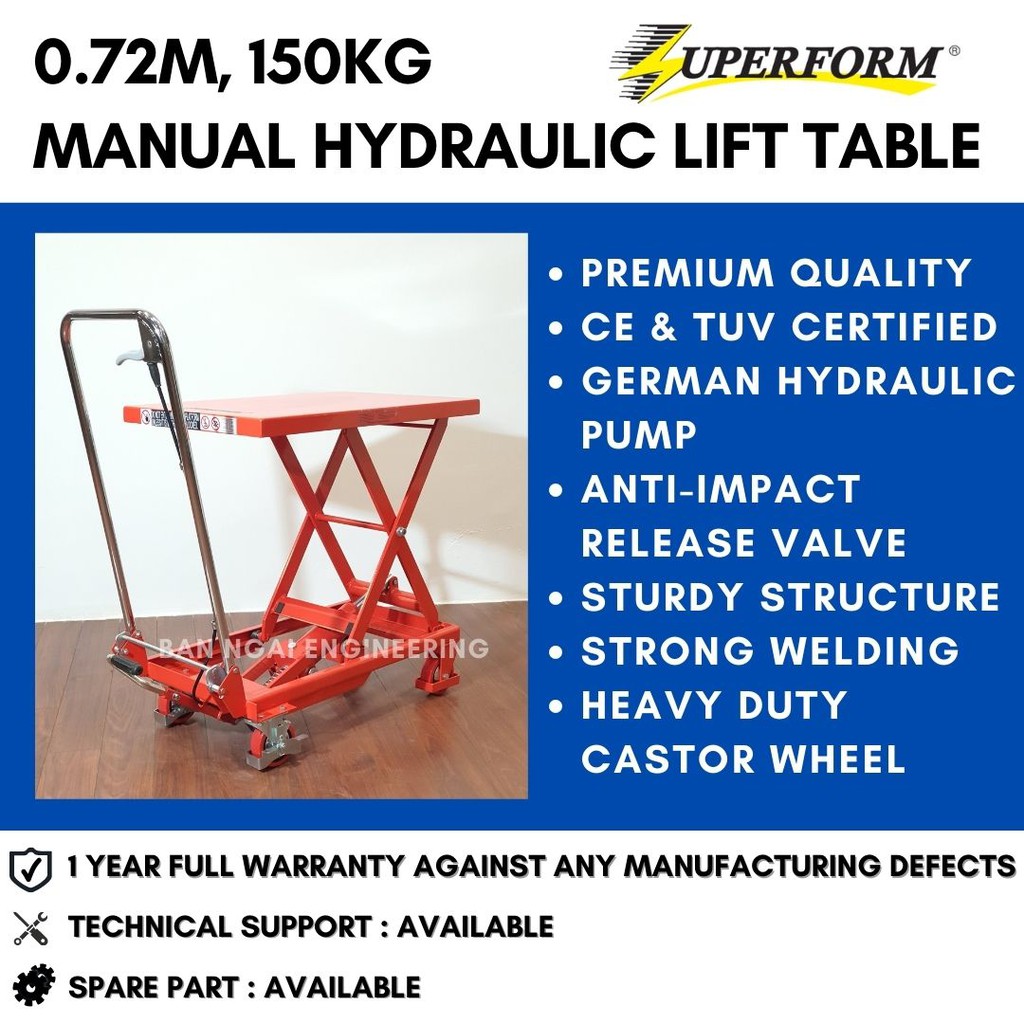 SUPERFORM 150 kg Hydraulic Table Truck Multi-function Steel Lift Table Manual Lift Table Scissor Lift Table Heavy Duty