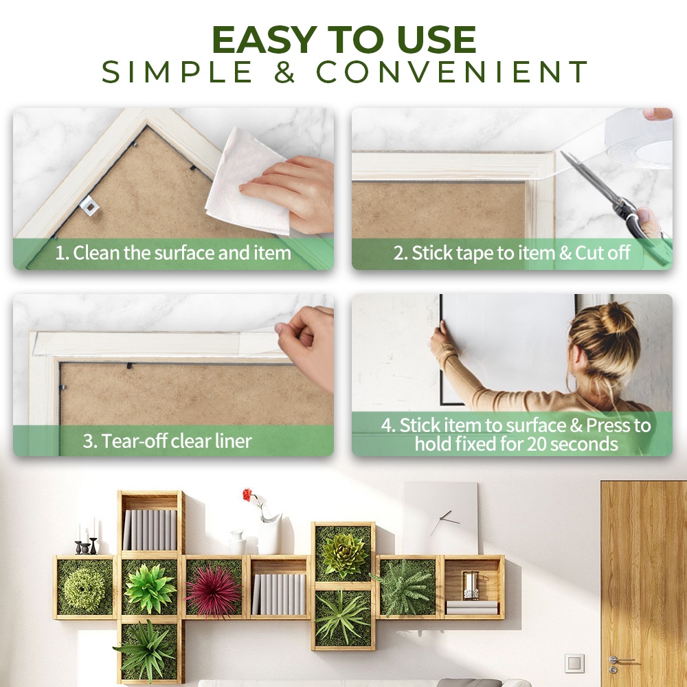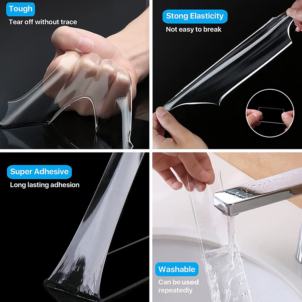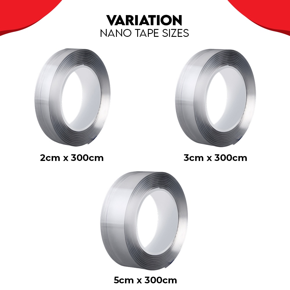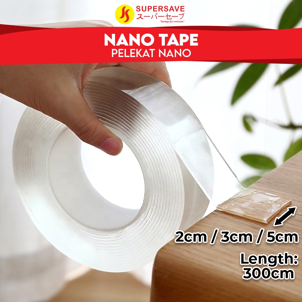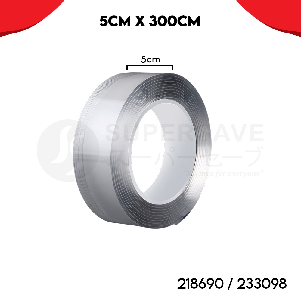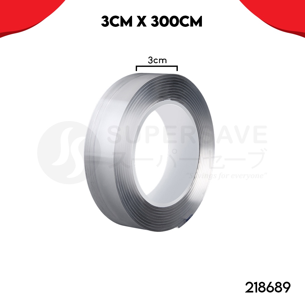 SUPERSAVE 300cm Acrylic Gel Tape Double Sided Tape Transparent Strong Stick Washable Reusable (3cm x 3m/5cm x 3m)