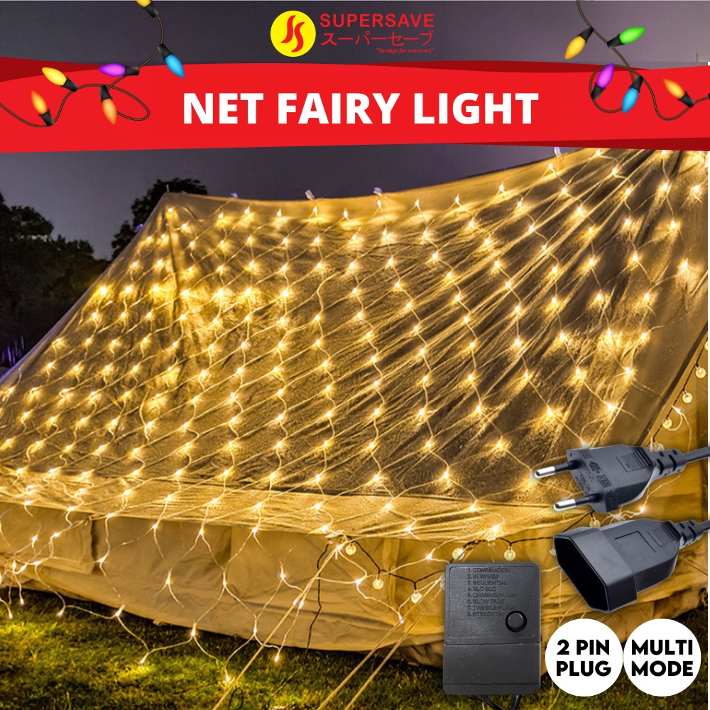 SUPERSAVE LED Light Net Fairy String Curtain Lights Garland Outdoor Wedding Party Festival Decor Lampu Berjala
