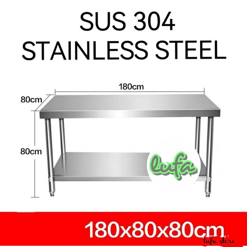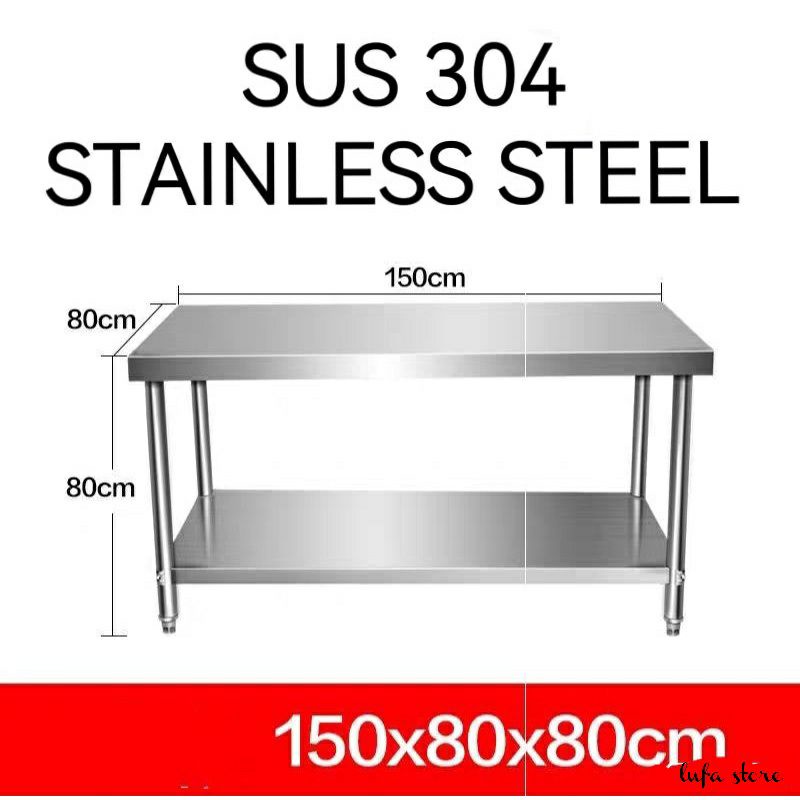 SUS 304 2 Tier Stainless Steel Kitchen Working Table Storage Rack Heavy Duty Cooking Table Rack Rak Meja Dapur