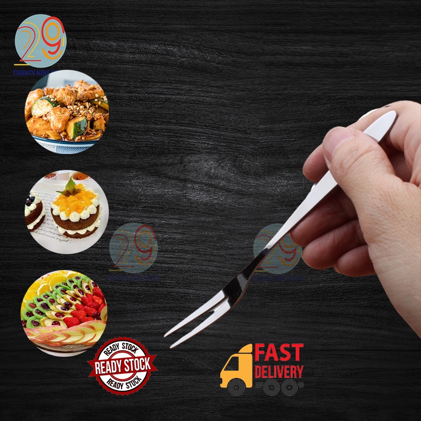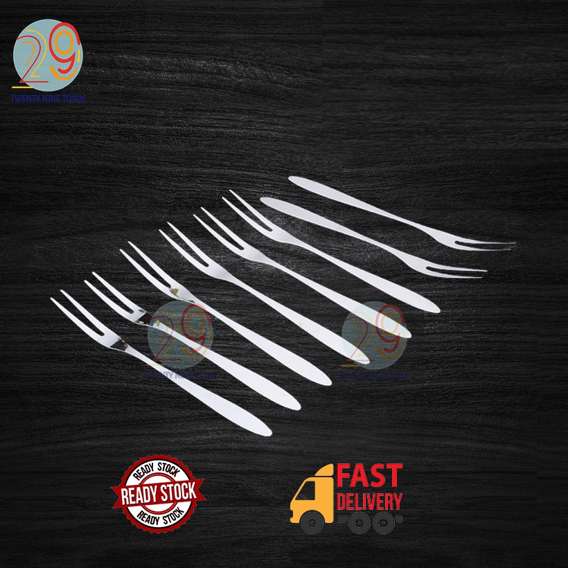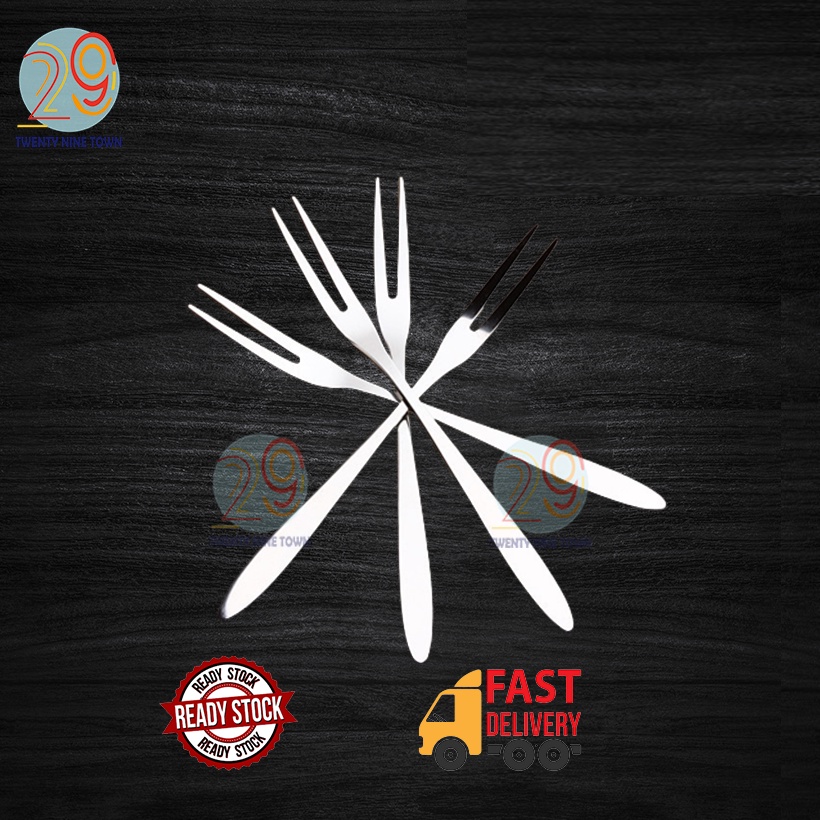 Wholesale Stainless Steel 2 Prong Dessert Fork Kitchen Small Appetizer Cake Fruits Rojak Western Forks不锈钢甜品叉小叉子