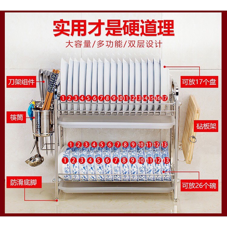 SUS 304 Stainless Steel 2-Tier Dish washing Rack Drain Rack Kitchen Rack Dish Plate