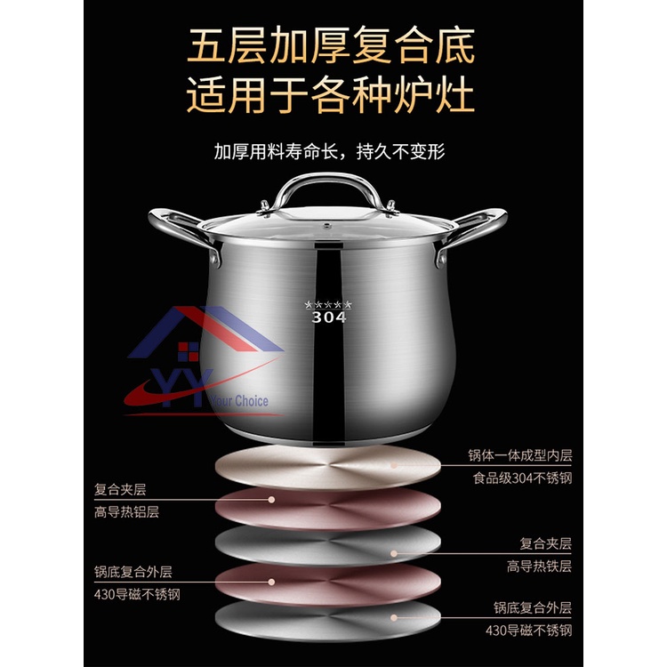 SUS 304 Stainless Steel High & Deep Pot /Soup Pot /Sauce Pot /Milk Pot /Cooking Pot with Glass Lid 22CM/24CM/26CM/28CM