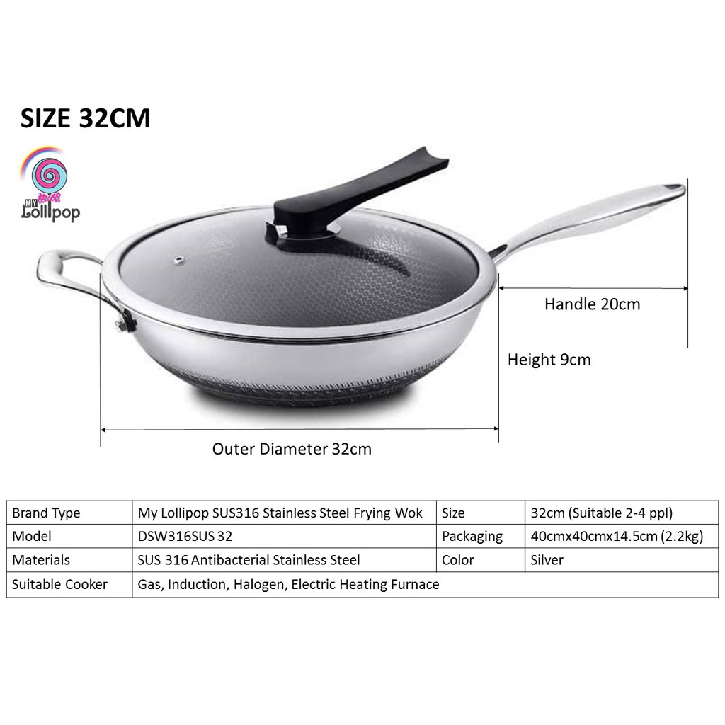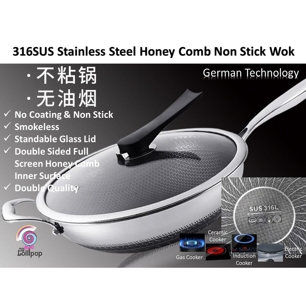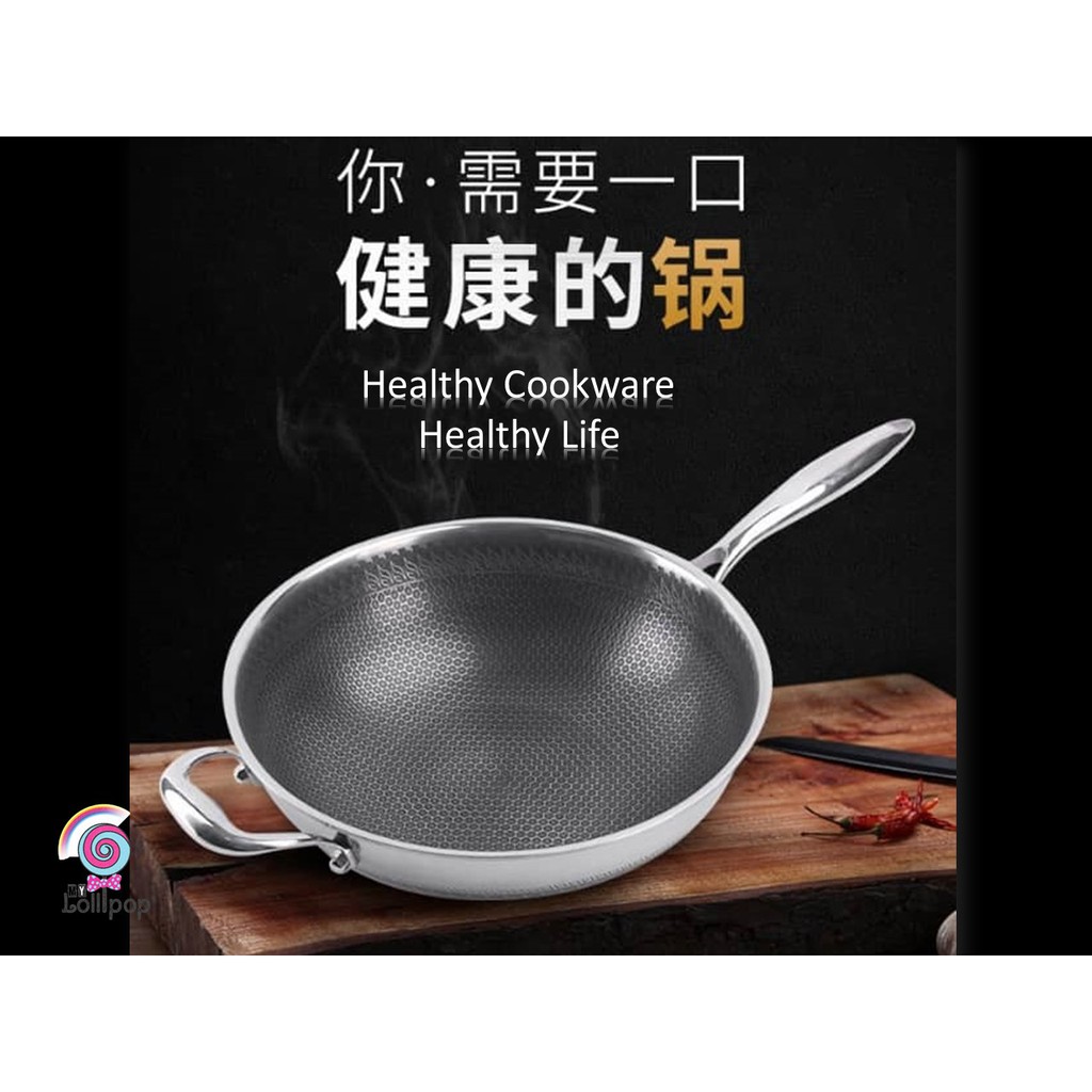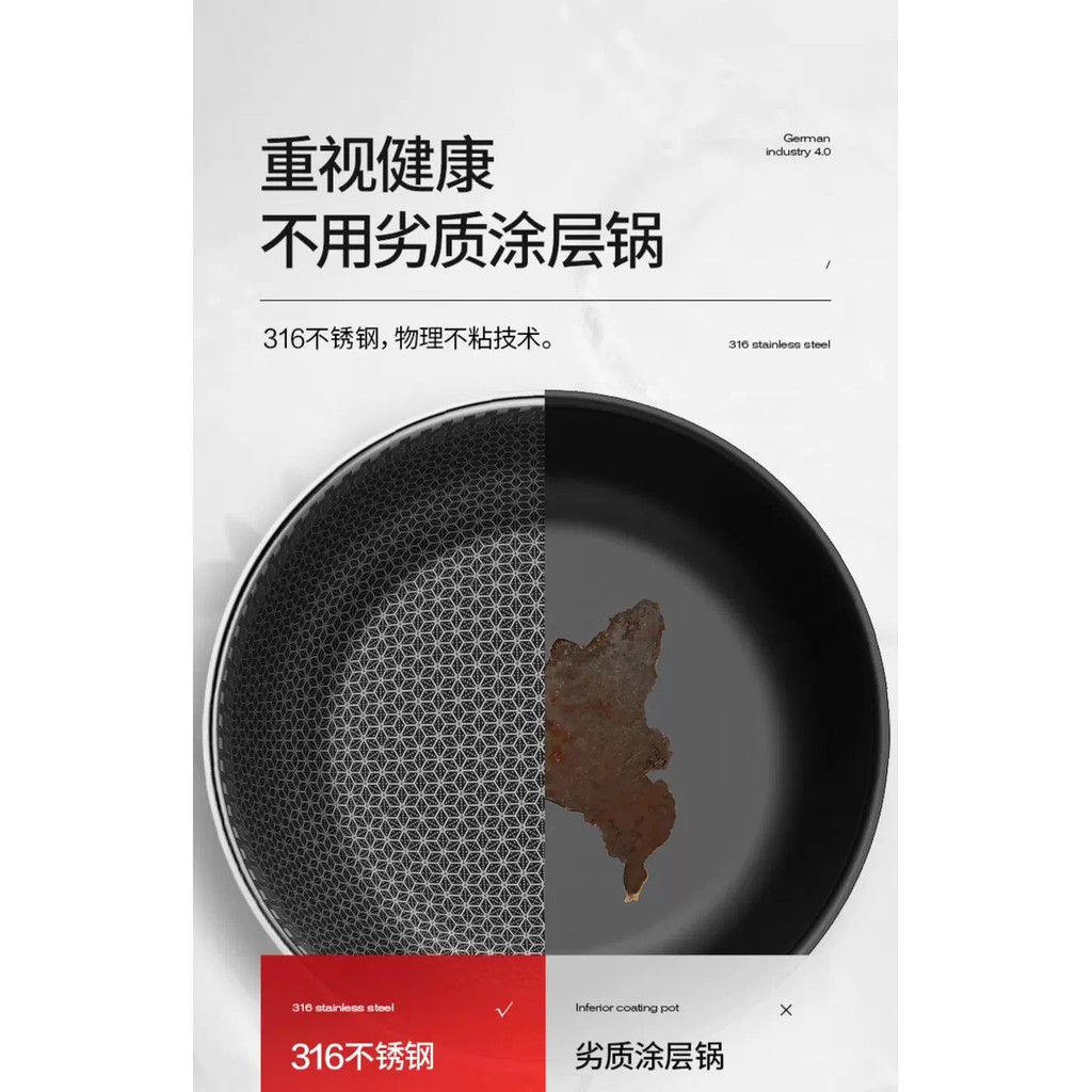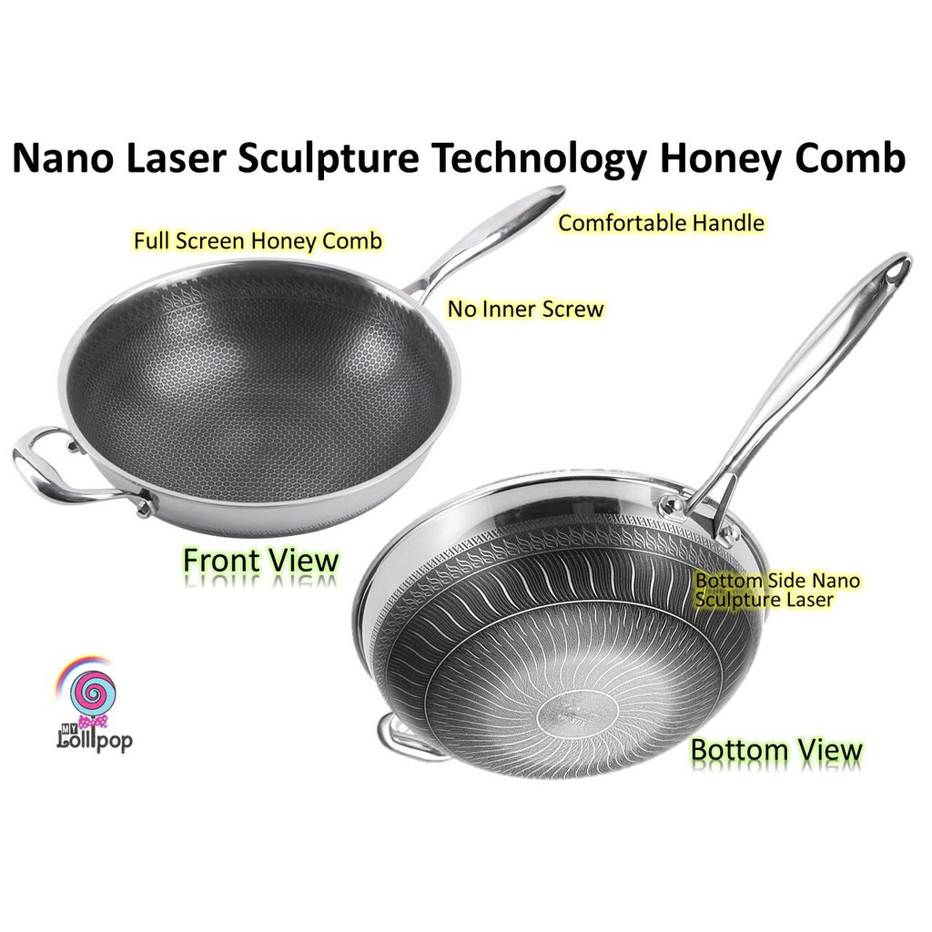 SUS 316 Stainless Steel 34cm Double-sided Full Screen Honeycomb Non-Stick Smokeless Frying Wok Pan 32cm/34cm