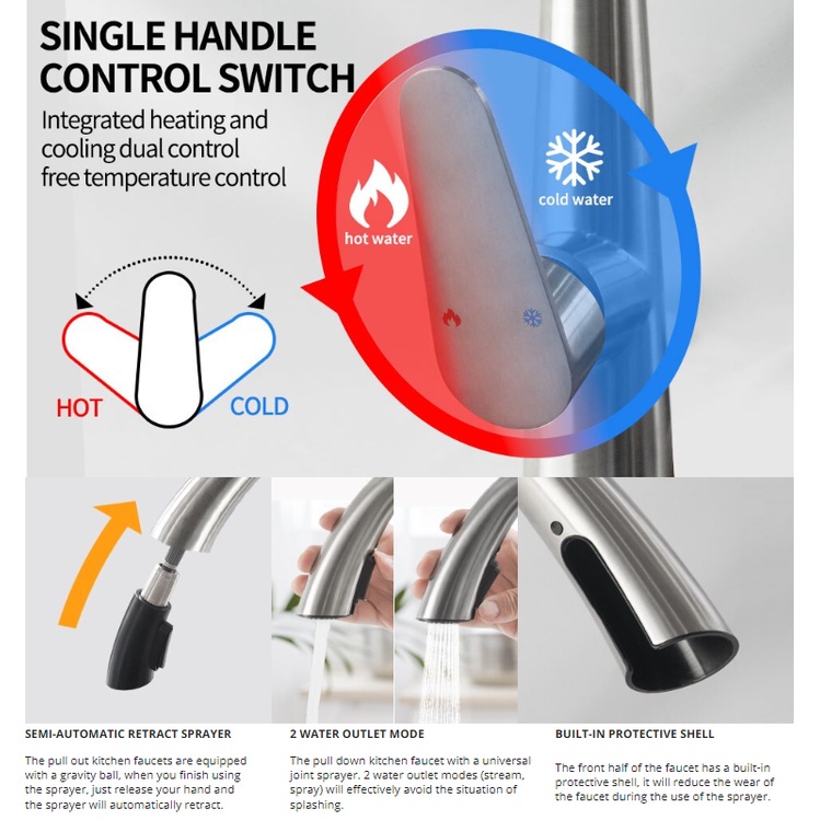 SUS304 Kitchen Faucet 304 Stainless Steel Pull Out Faucet Mixer Tap NEW Sink Tap Kepala Paip Sinki Paip Dapur 360 Rotate