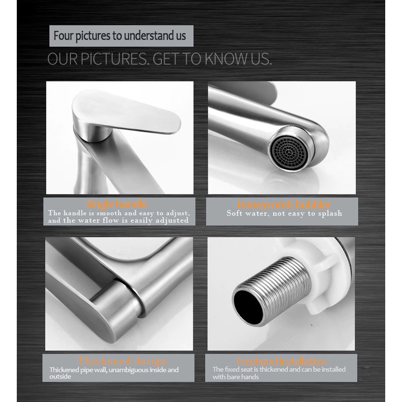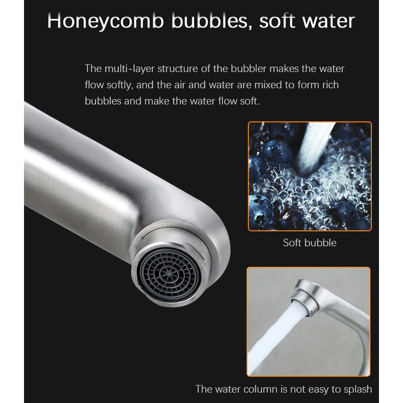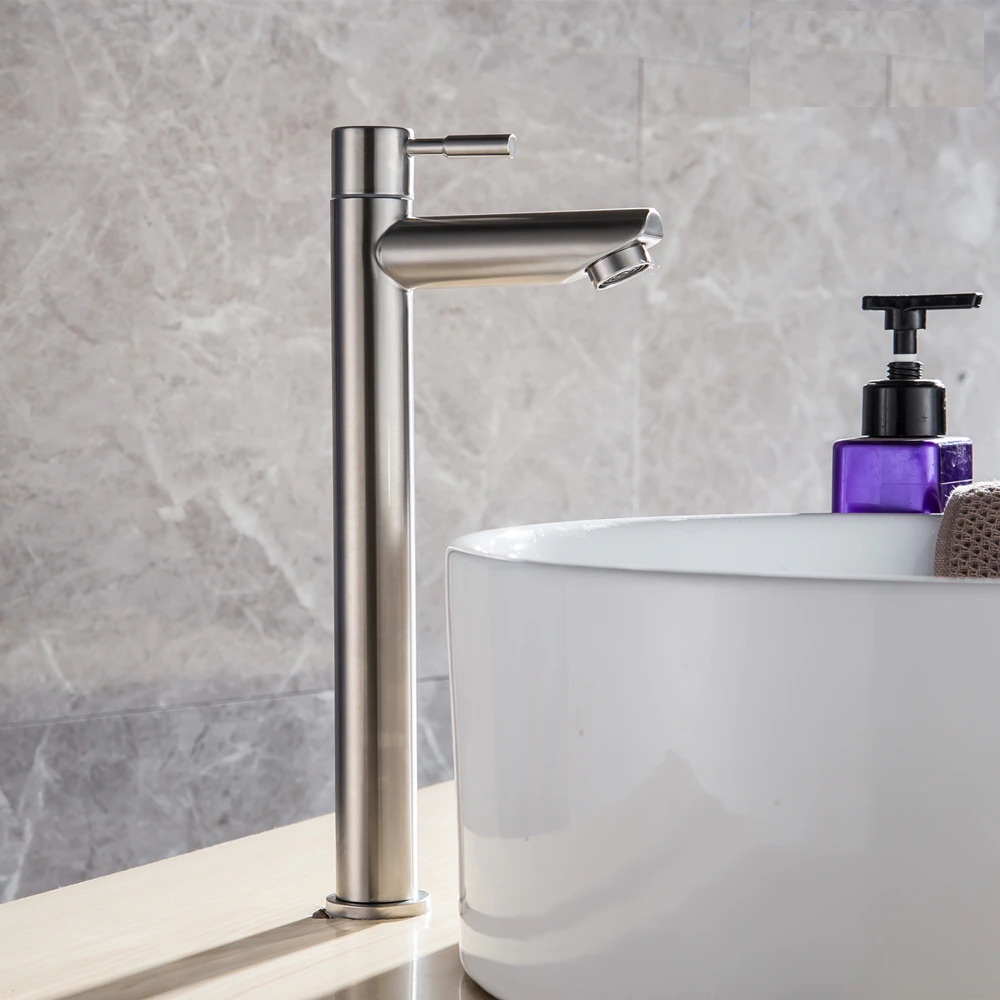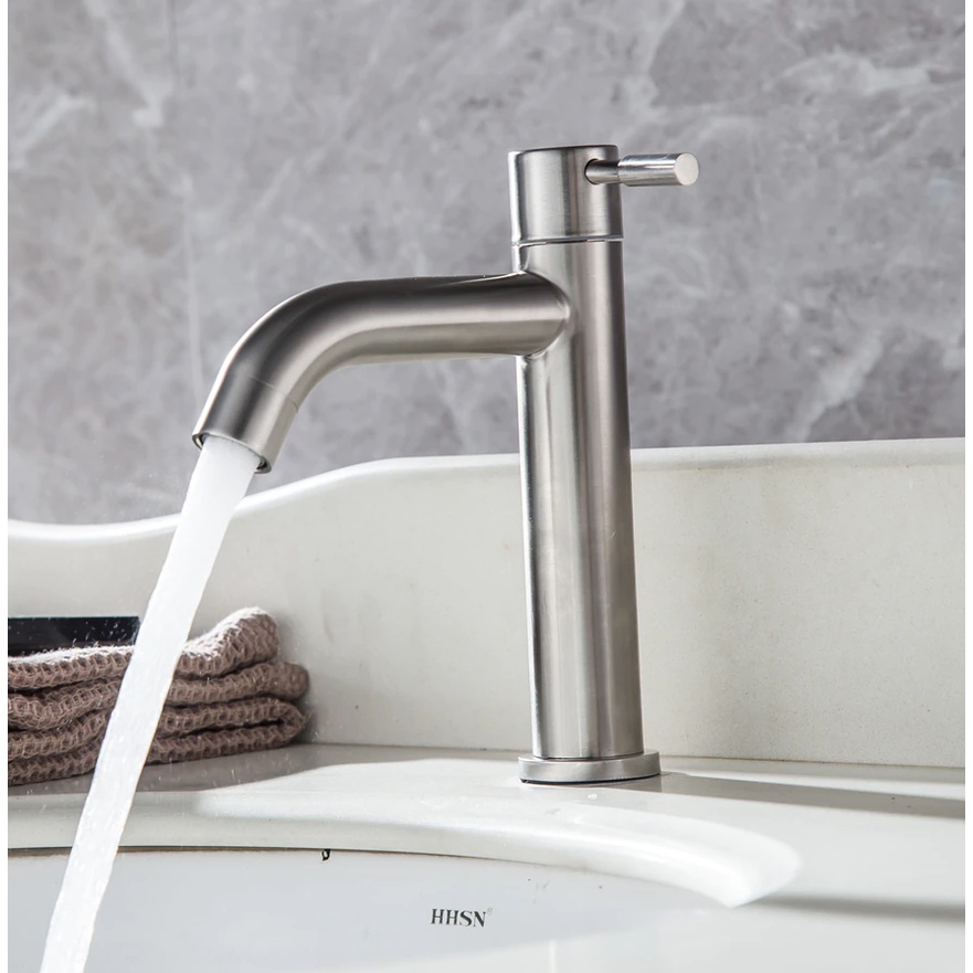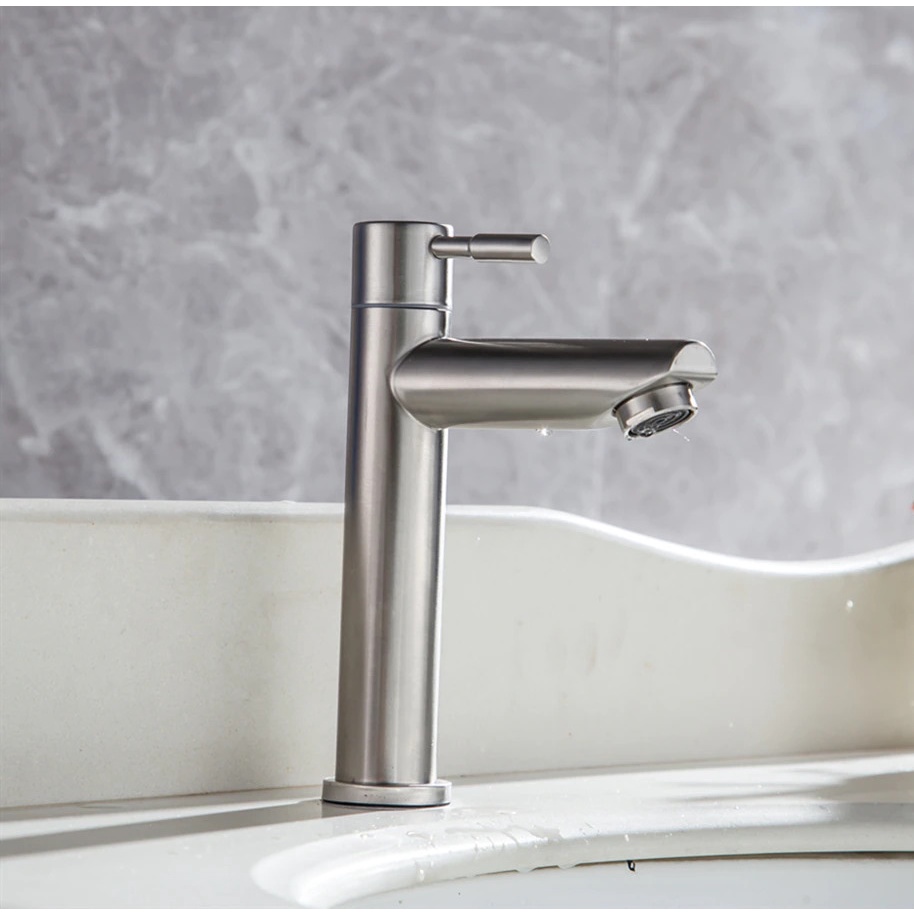 SUS304 Stainless Steel Faucet Heightening Paip Basin Single Cold Tap Basin Copper Toilet Tap Bathroom Faucet Paip Sinki