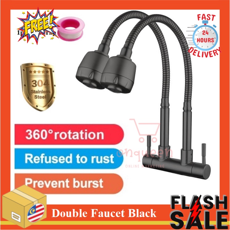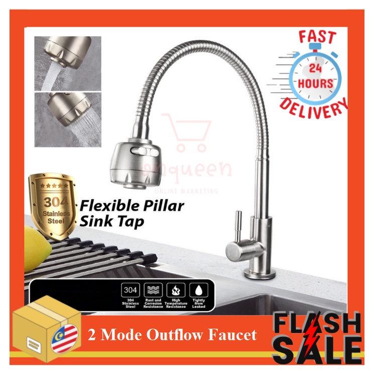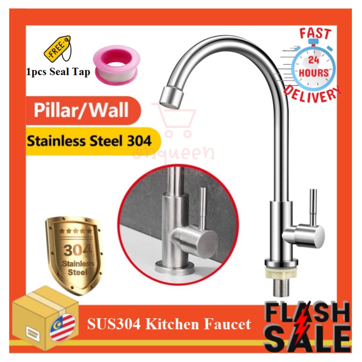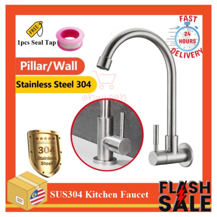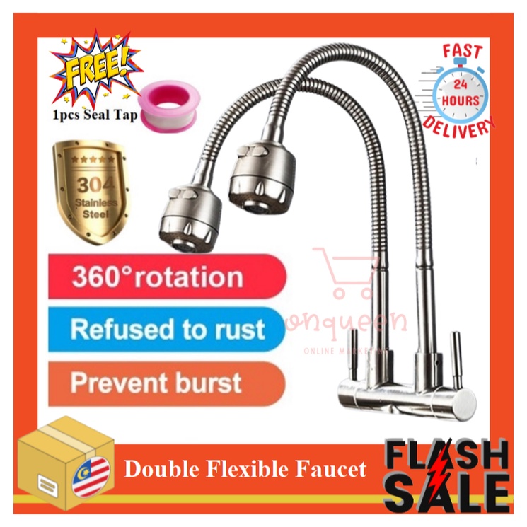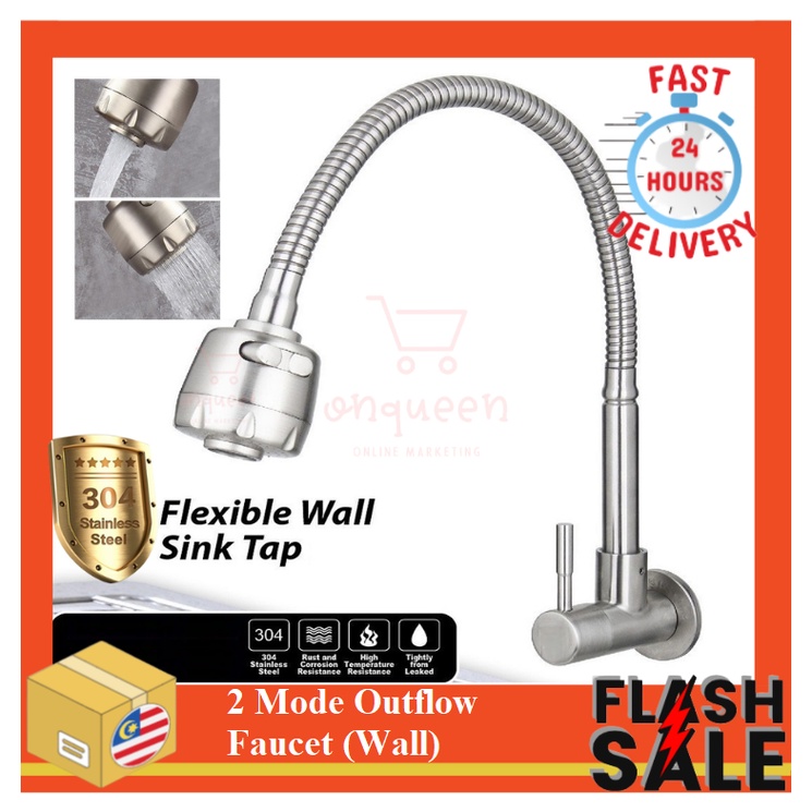 SUS304 Stainless Steel Flexible Hose Single Tap Wall Faucet Kitchen Sink Hos Paip Dapur Singki Paip Basuh Tangan Dinding