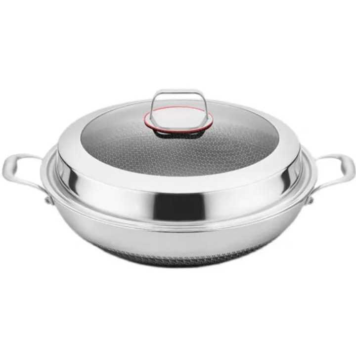 THL SUS316 Stainless Steel Honeycomb Wok Pan Non-Stick Beehive Pan Honeycomb Wok Frying Pan With Lid