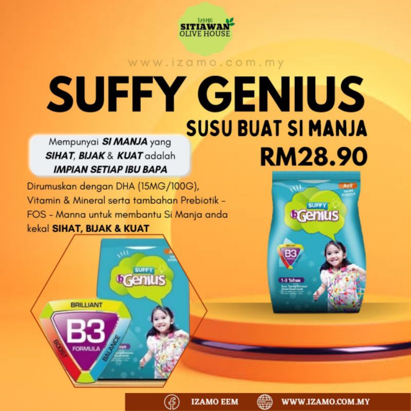 SUSU SUFFY B GENIUS 900g - Dirumus Dengan DHA, Vitamin Dan Mineral Bagus Untuk Tumbesaran Anak