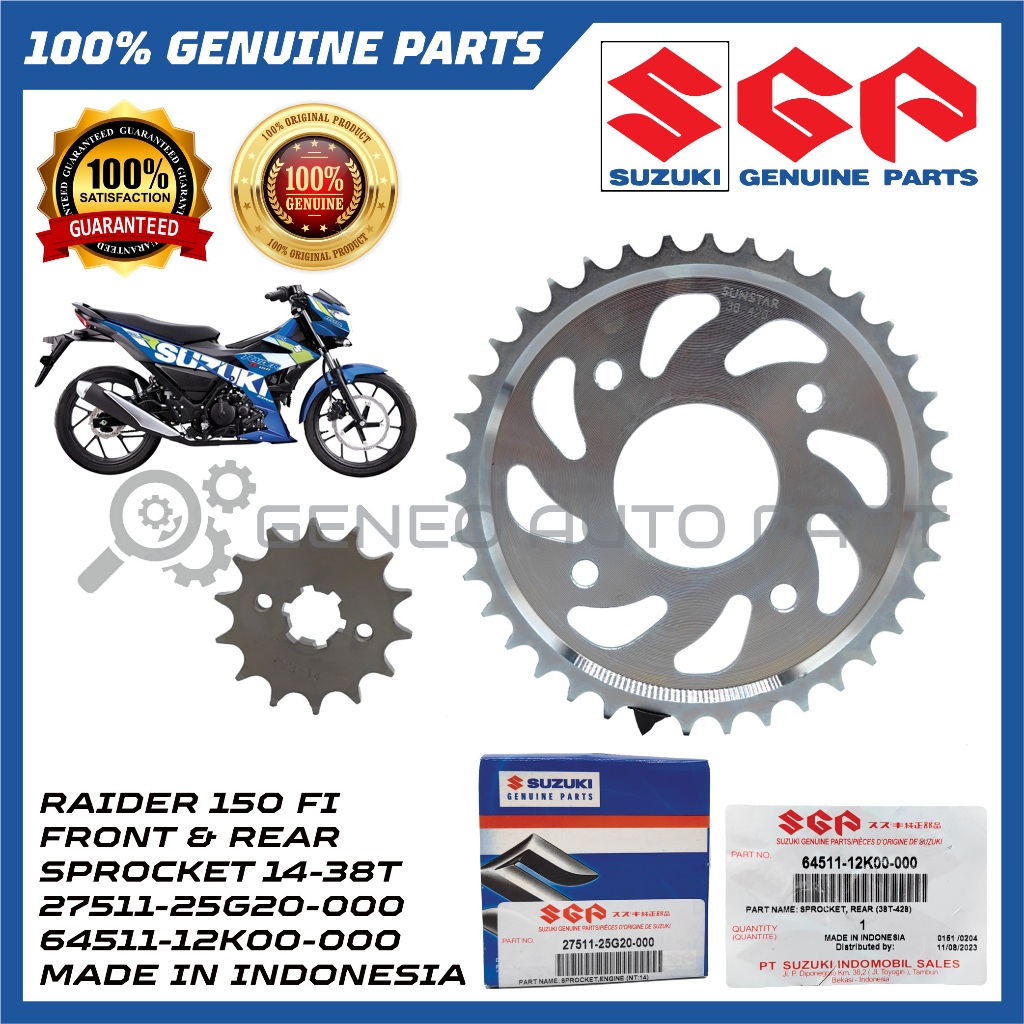 SUZUKI RAIDER 150 FI FUEL INJECTION SPROCKET SET DEPAN BELAKANG FRONT REAR SUNSTAR 100% ORIGINAL SUZUKI PART