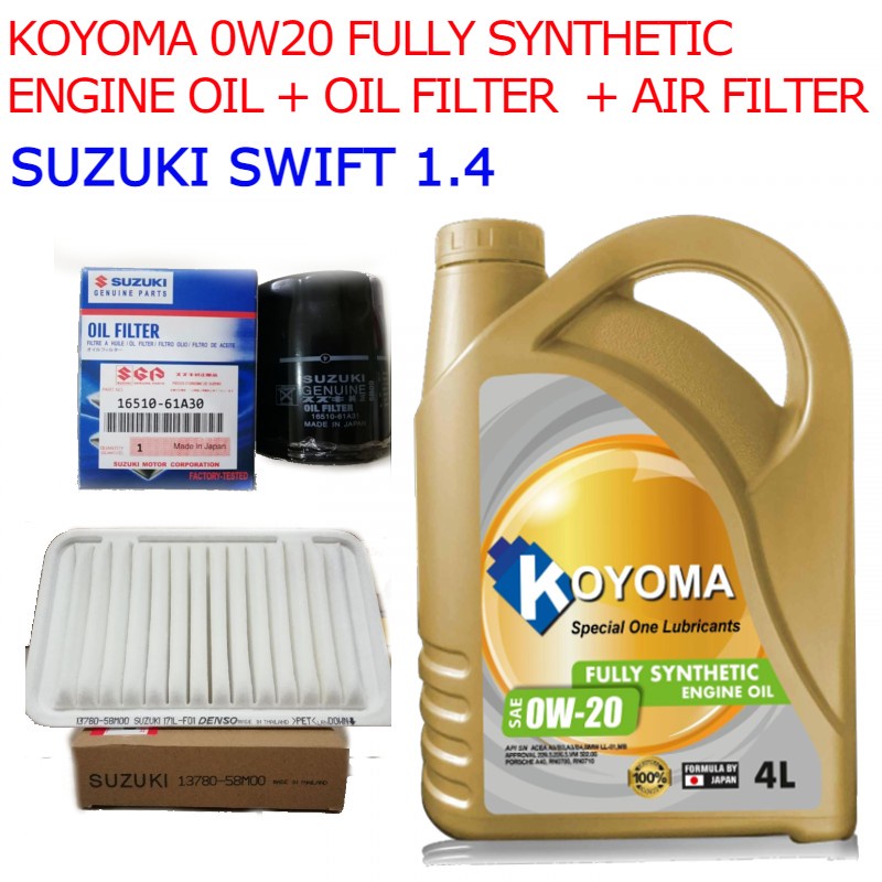 SUZUKI SWIFT 1.4 OIL FILTER + AIR FILTER + KOYOMA 0W20 FULLY SYNTHETIC ENGINE OIL
