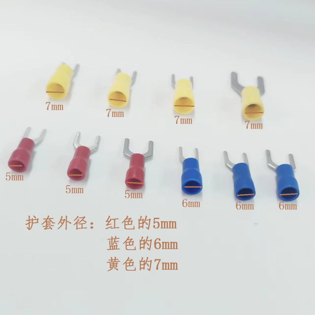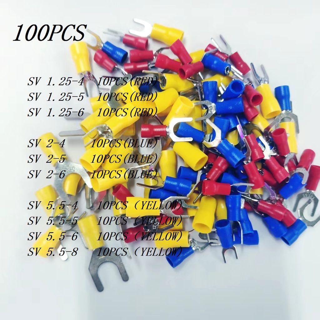SV1.25/2/5.5mm Quick Crimping V-Type Fork Type Wire Ear Cold Terminal 0.5-6 Square Available Mixed 100 Pieces Pack Red Yellow Blue