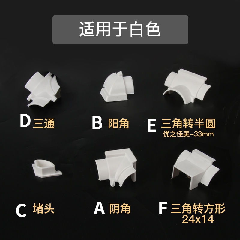SW-35 Triangle Trunking Accessories Internal Angle External Angle Tee Triangle to No. 3 Semicircle Square Wire Cover Organizer Wall Cable Duct Channe Connector Connector(Single shot will not be shipped)