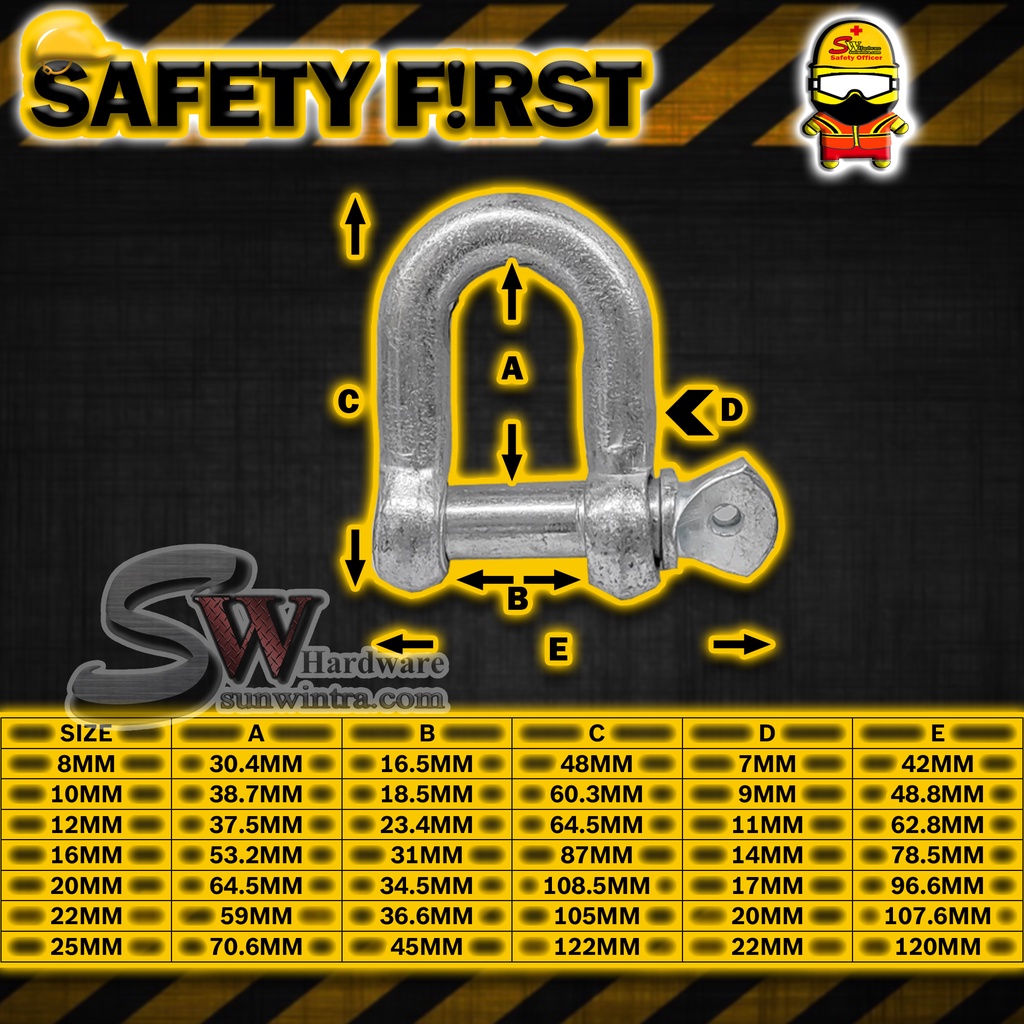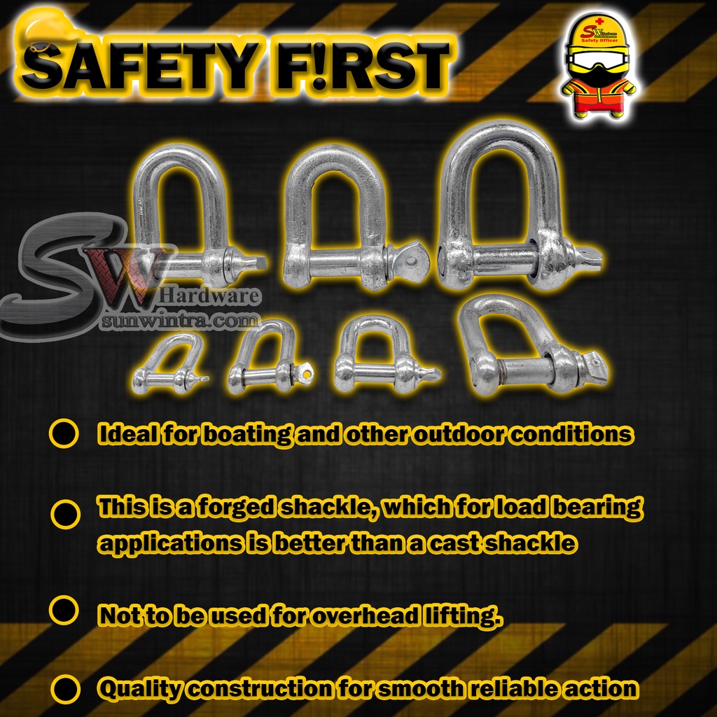 SW Hardware High Quality Galvanized Iron Shackle GI Shackle D-Shape(Different Size Available)