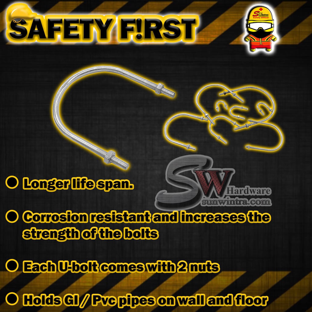 SW Hardware High Quality Galvanized U-Bolt c/with 2 Nut U-Bolt for Pipe