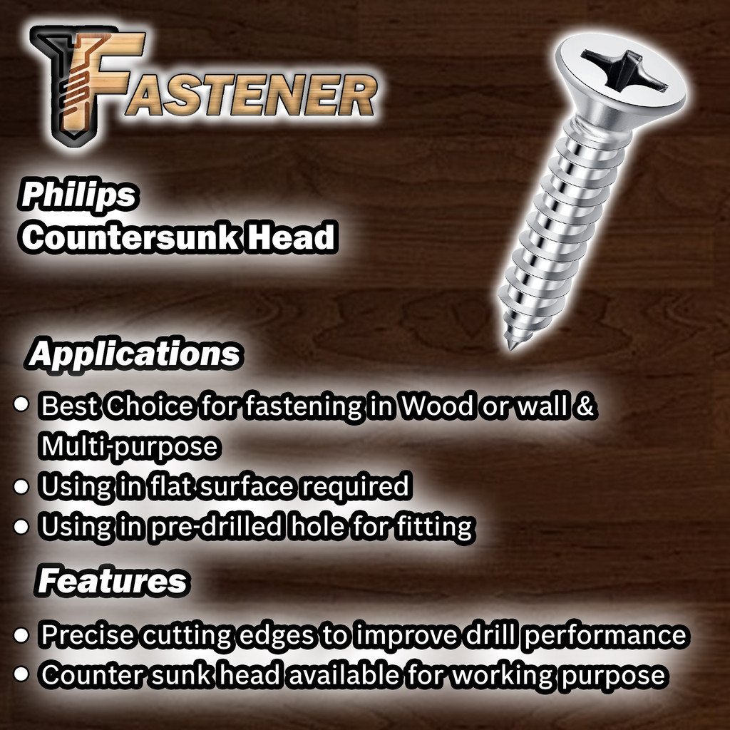 SW Hardware [LOOSE PACK] Self Tapping Screw [ FLAT HEAD ] Counter Sunk Head for Wood (Different Saiz Available)