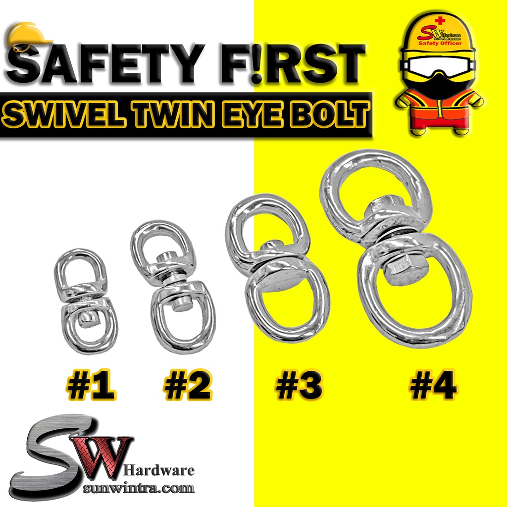SW Hardwre Heavy Duty Swivel Twin Eye Bolt KEY CHAIN DOUBLE RING ROUND EYE SWIVEL BOLT