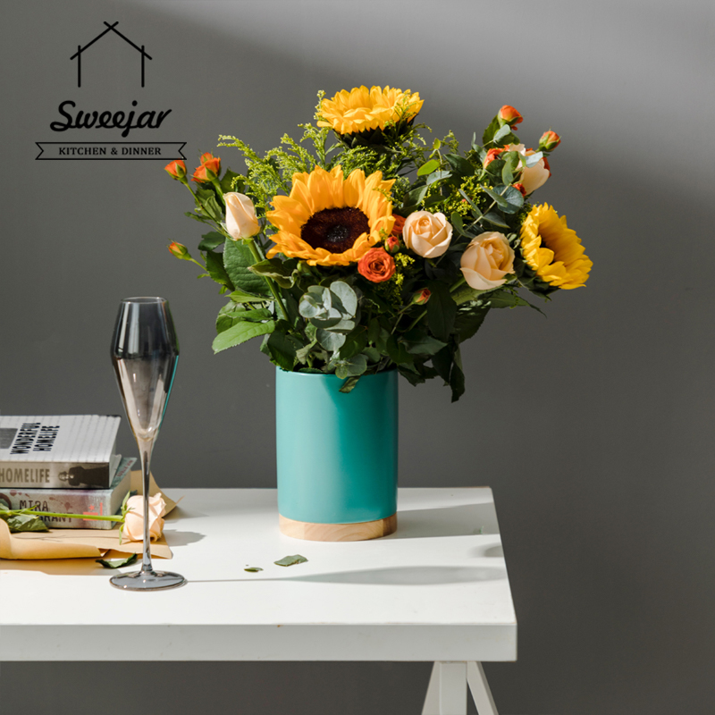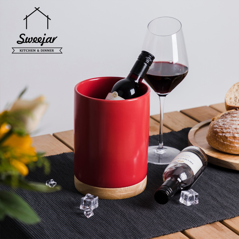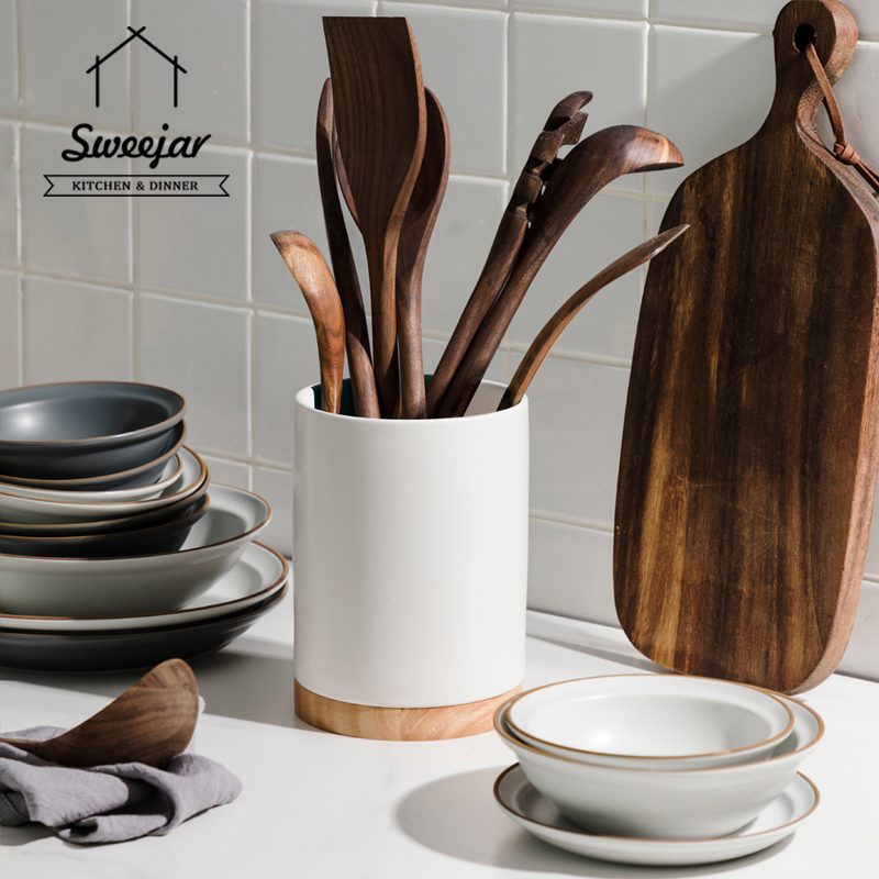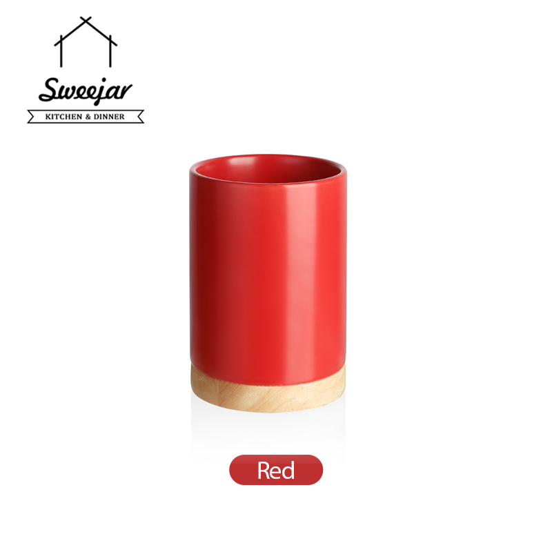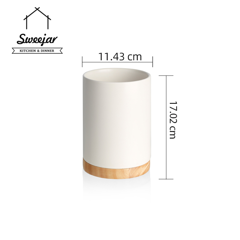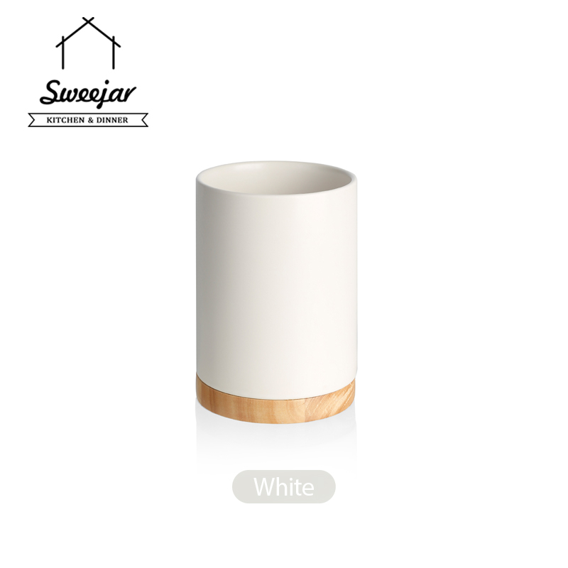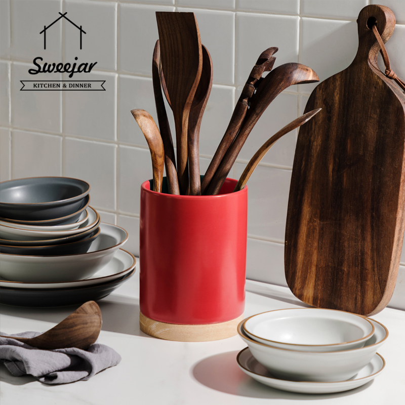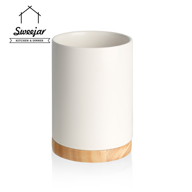 SWEEJAR Kitchen Utensil Holder with Wooden Bottom Ceramic Kitchenware Crock Jar for Spatulas Paddle Shovel Cooking Tools