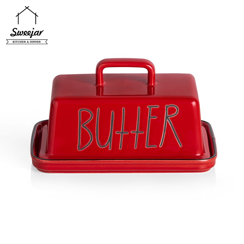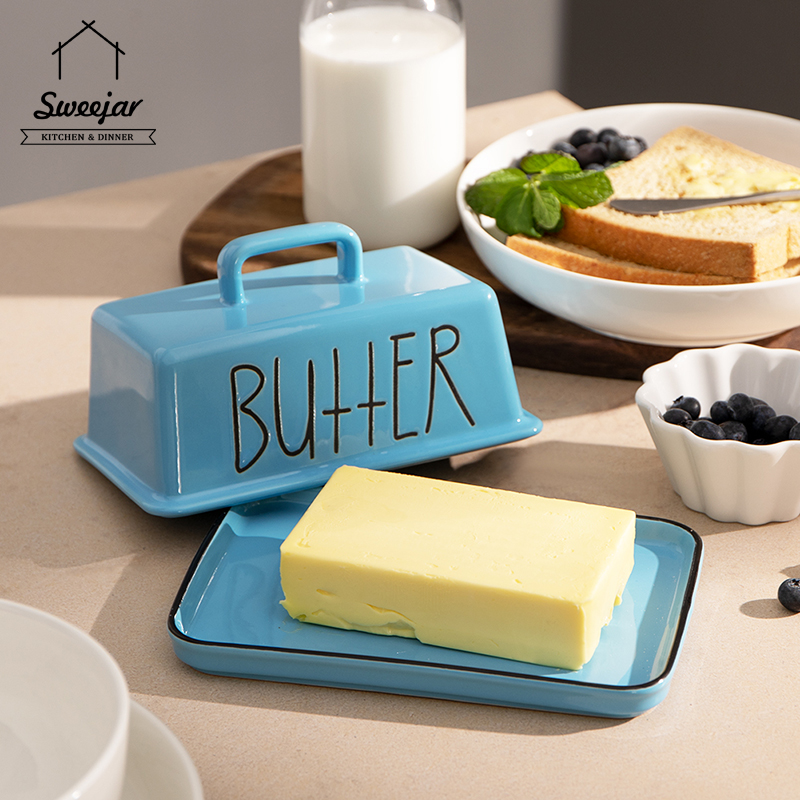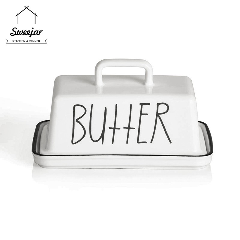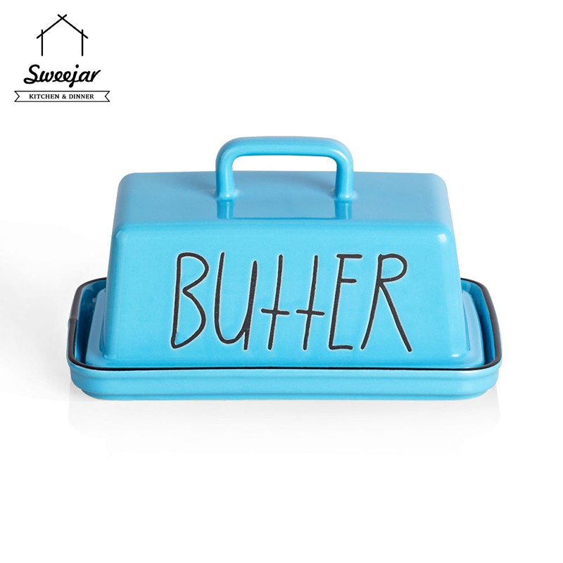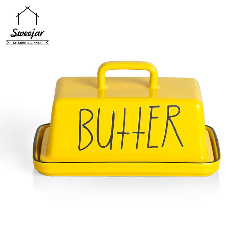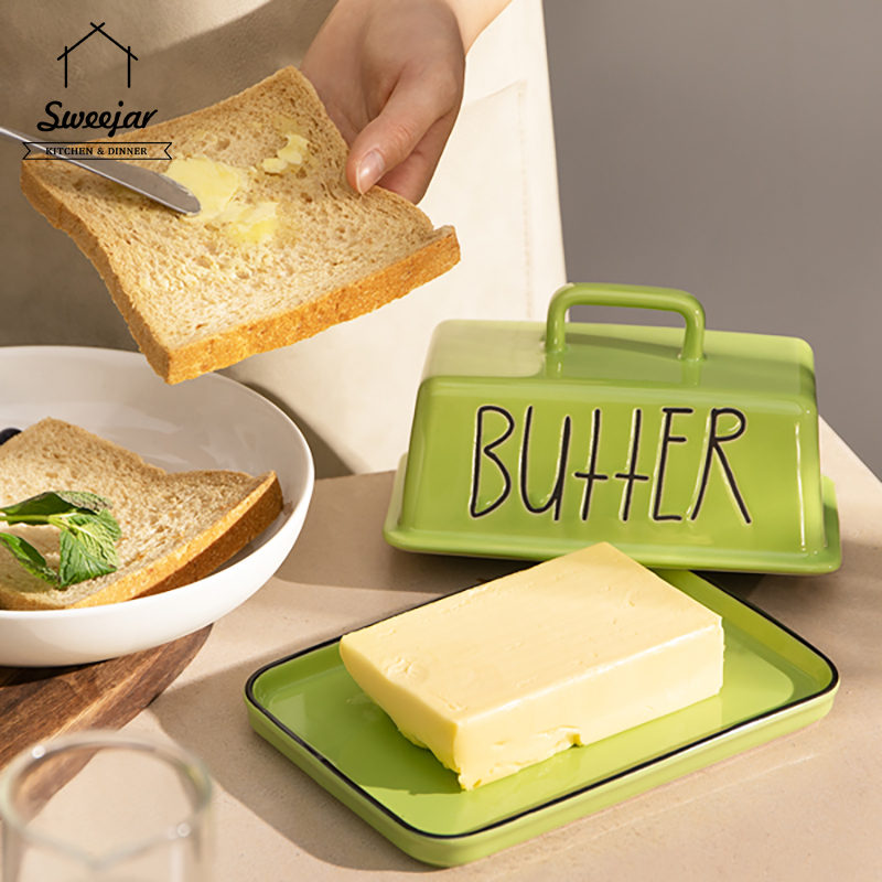 SWEEJAR Large Capacity Ceramic Butter Dish with Handle Lid Butter Container Serving Tray