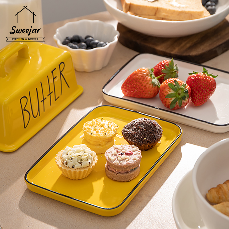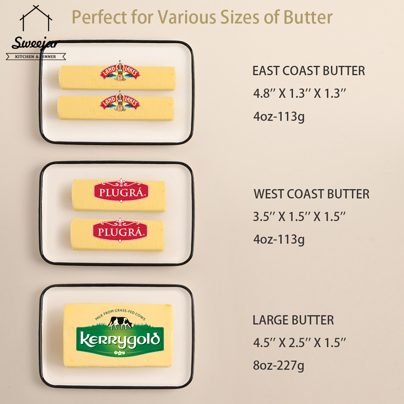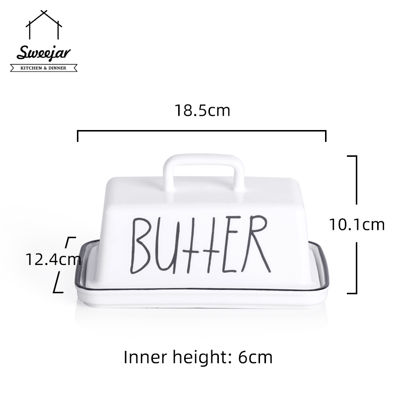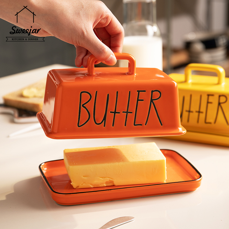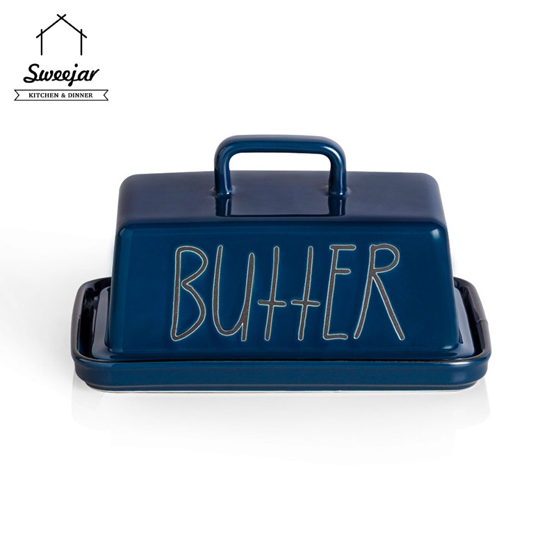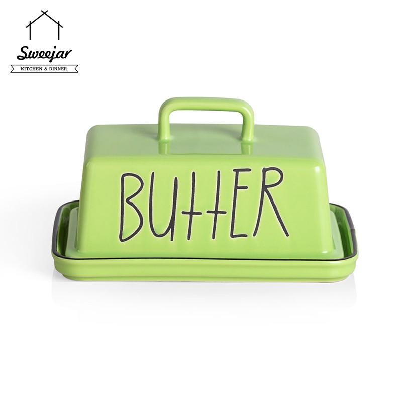 SWEEJAR Large Capacity Ceramic Butter Dish with Handle Lid Butter Container Serving Tray
