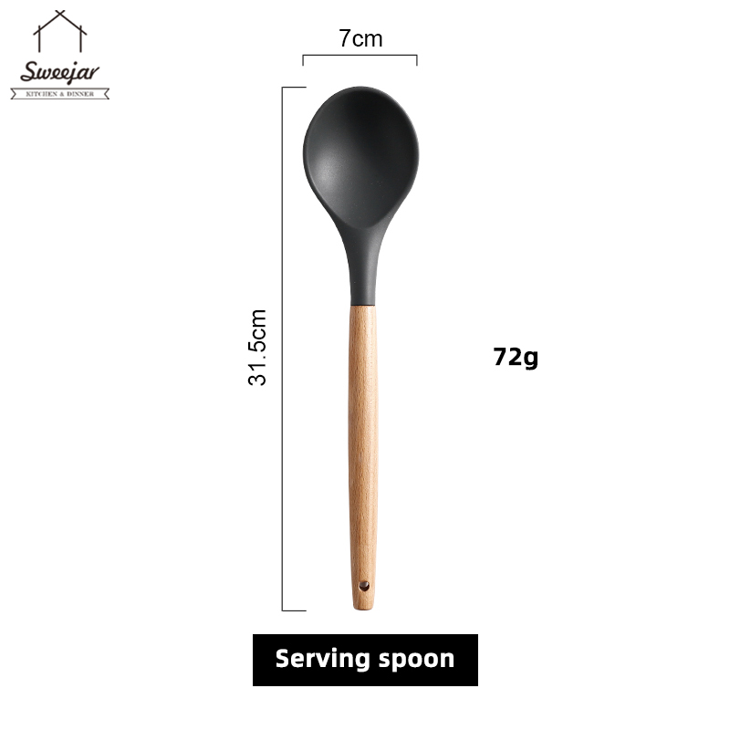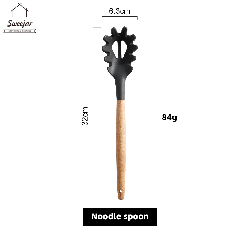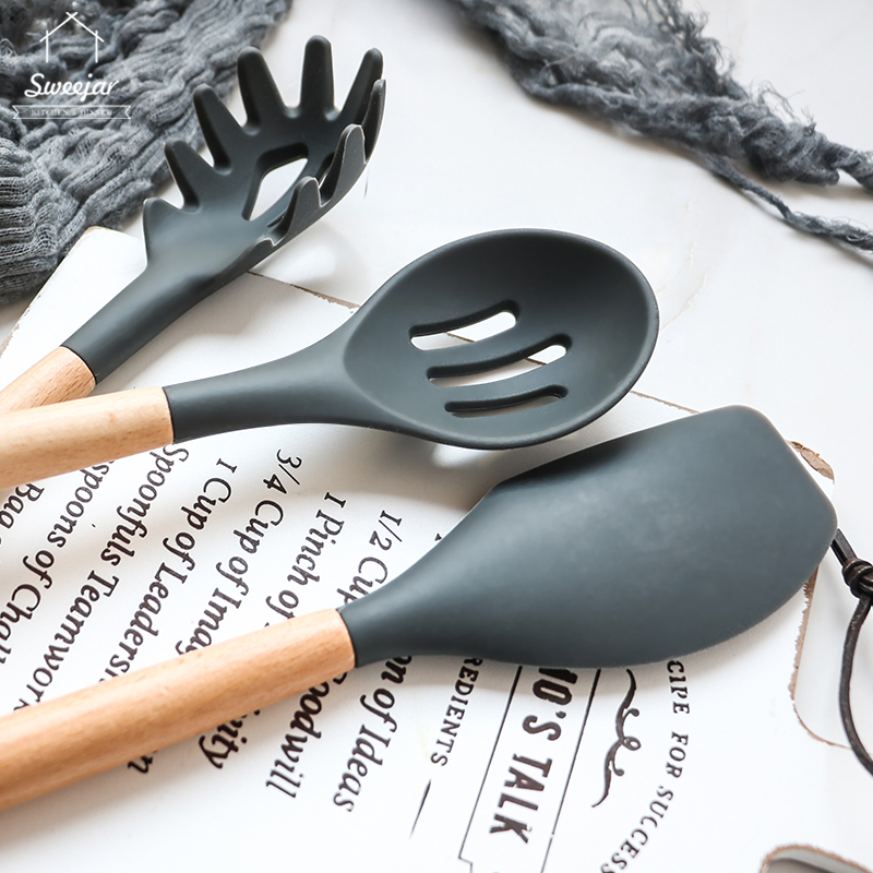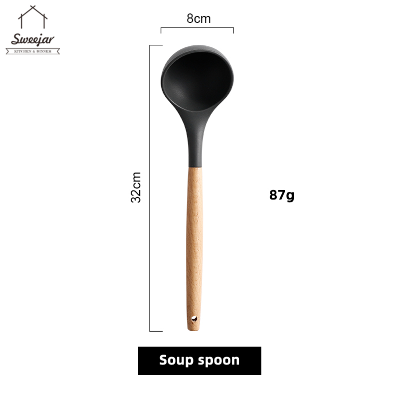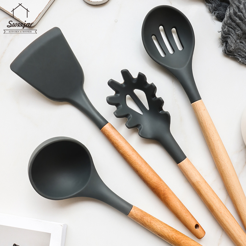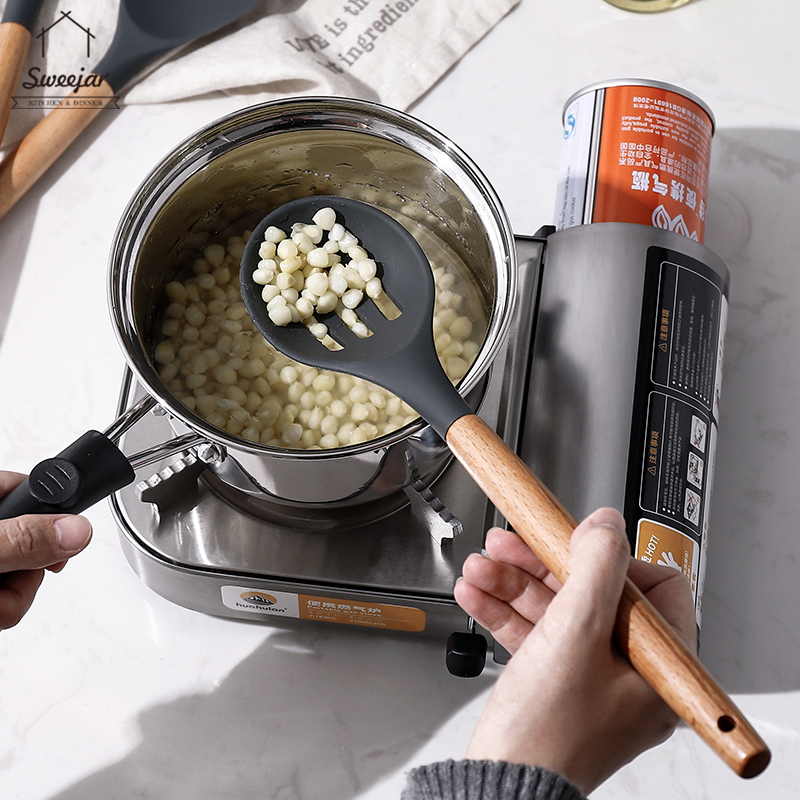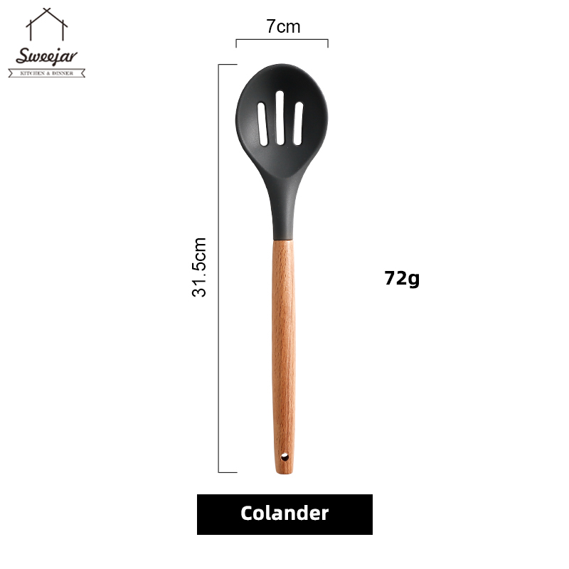 Sweejar wooden silicone kitchenware set cooking spoon shovel spatula soup colander