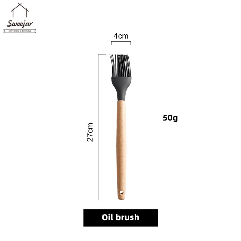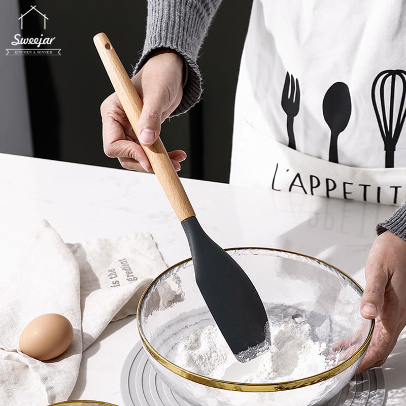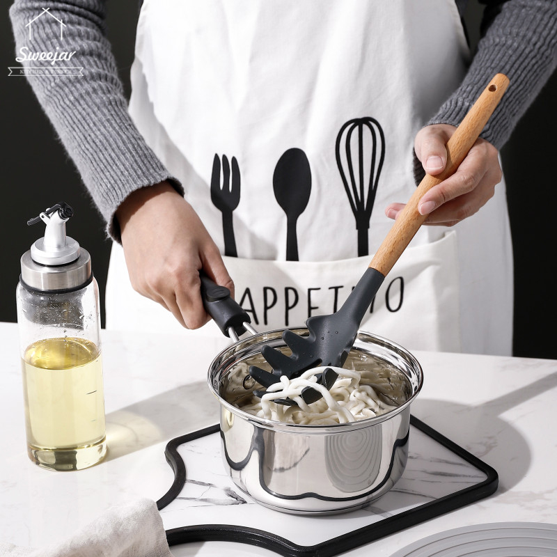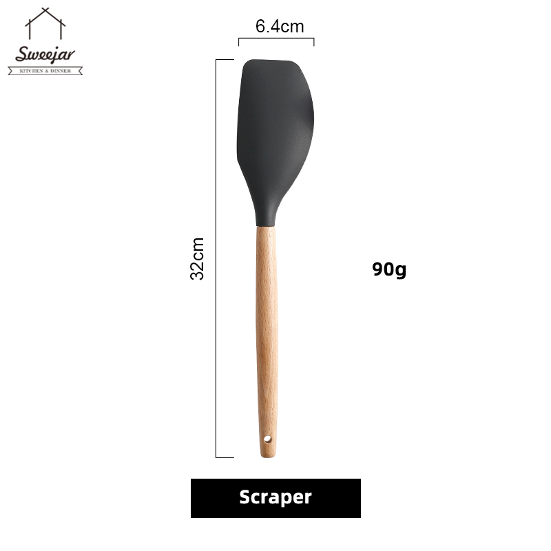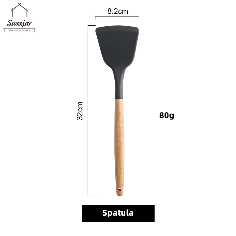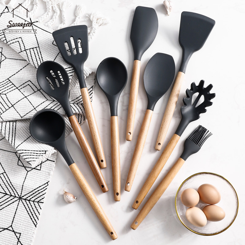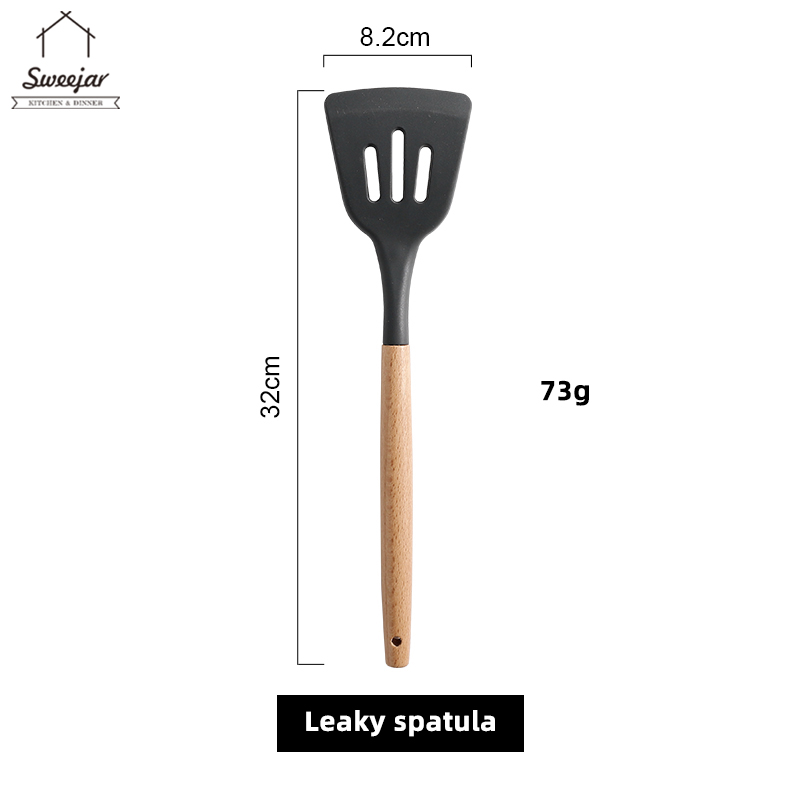 Sweejar wooden silicone kitchenware set cooking spoon shovel spatula soup colander