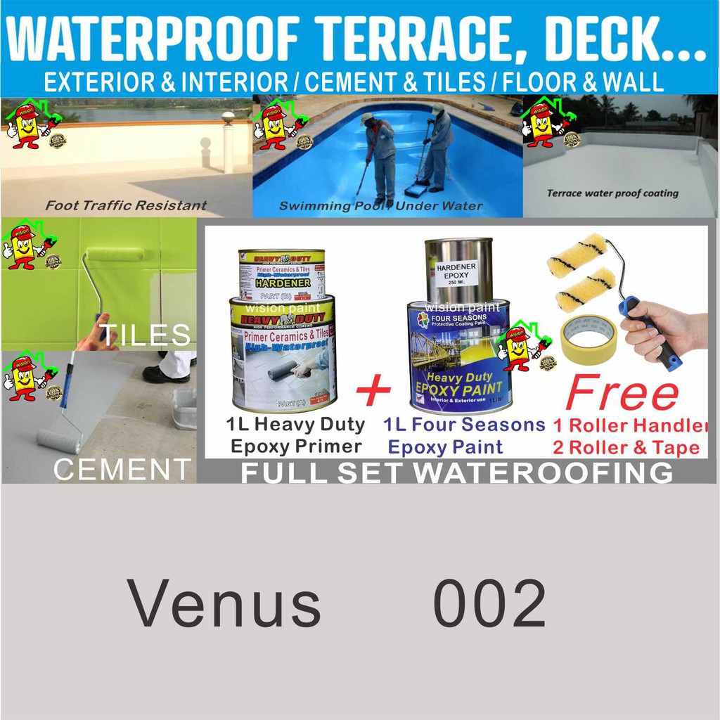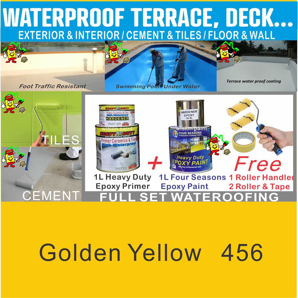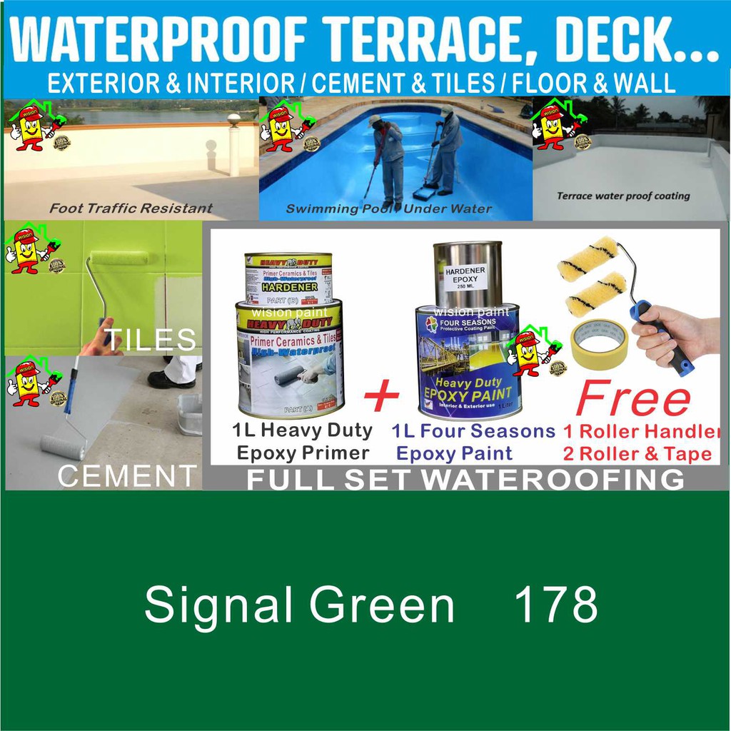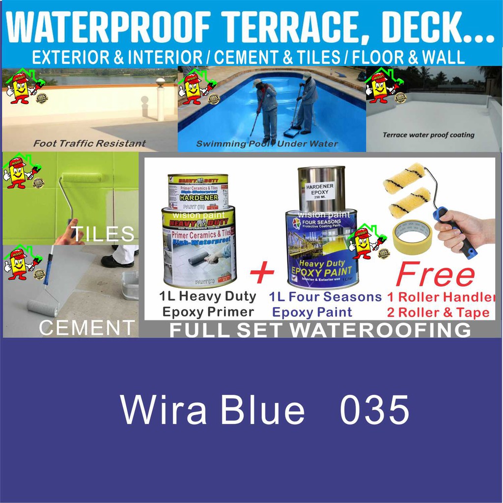 SWIMMING POOL EPOXY PAINT WATERPROOF EPOXY FLOOR COATING ( FULL SET 1L PRIMER / 1L EPOXY / FREE TOOLS ) / CEMENT / TILES