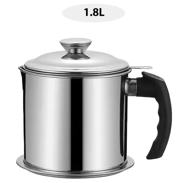 SW_ Oil Pot 304 Stainless Steel Oil Pot Grease Keeper Oil Filter Pot Cooking Oil Pot Oil Strainer Container Pot
