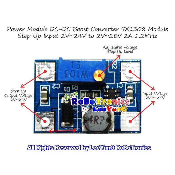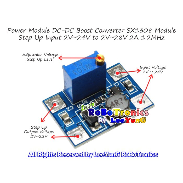 SX1308 Adjustable Voltage Step Up Module DC-DC Boost Converter 2-24V to 2-28V